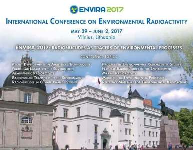 "4th International Conference on Environmental Radioactivity: Radionuclides as Tracers of Environmental Processes" 29 May – 2 June 2017 Vilnius, Lithuania