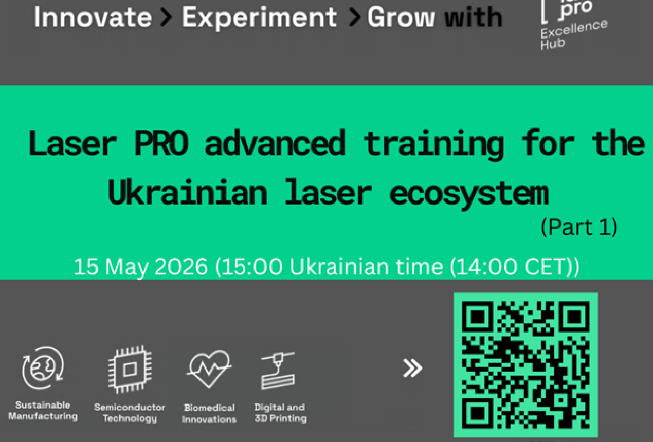 We invite you to participate in the international online training “Laser PRO Advanced Training for the Ukrainian Laser Ecosystem (Part 1)”, aimed at strengthening Ukraine’s laser and photonics ecosystem and fostering international collaboration.