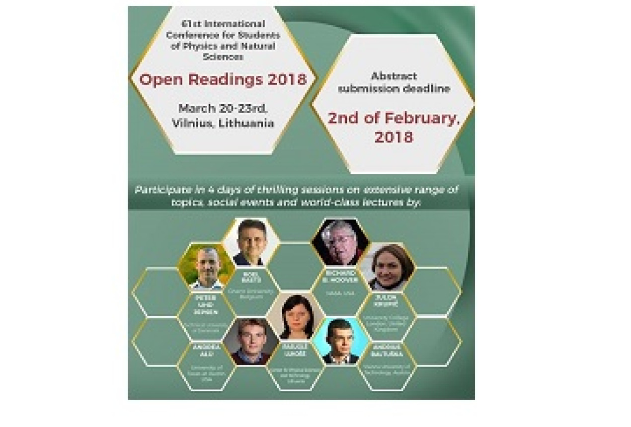 Open Readings 2018 will be held on March 20-23, 2018 at the National Center for Physical Sciences and Technology (NCPST), Saulėtekio Ave. 3, Vilnius, Lithuania.