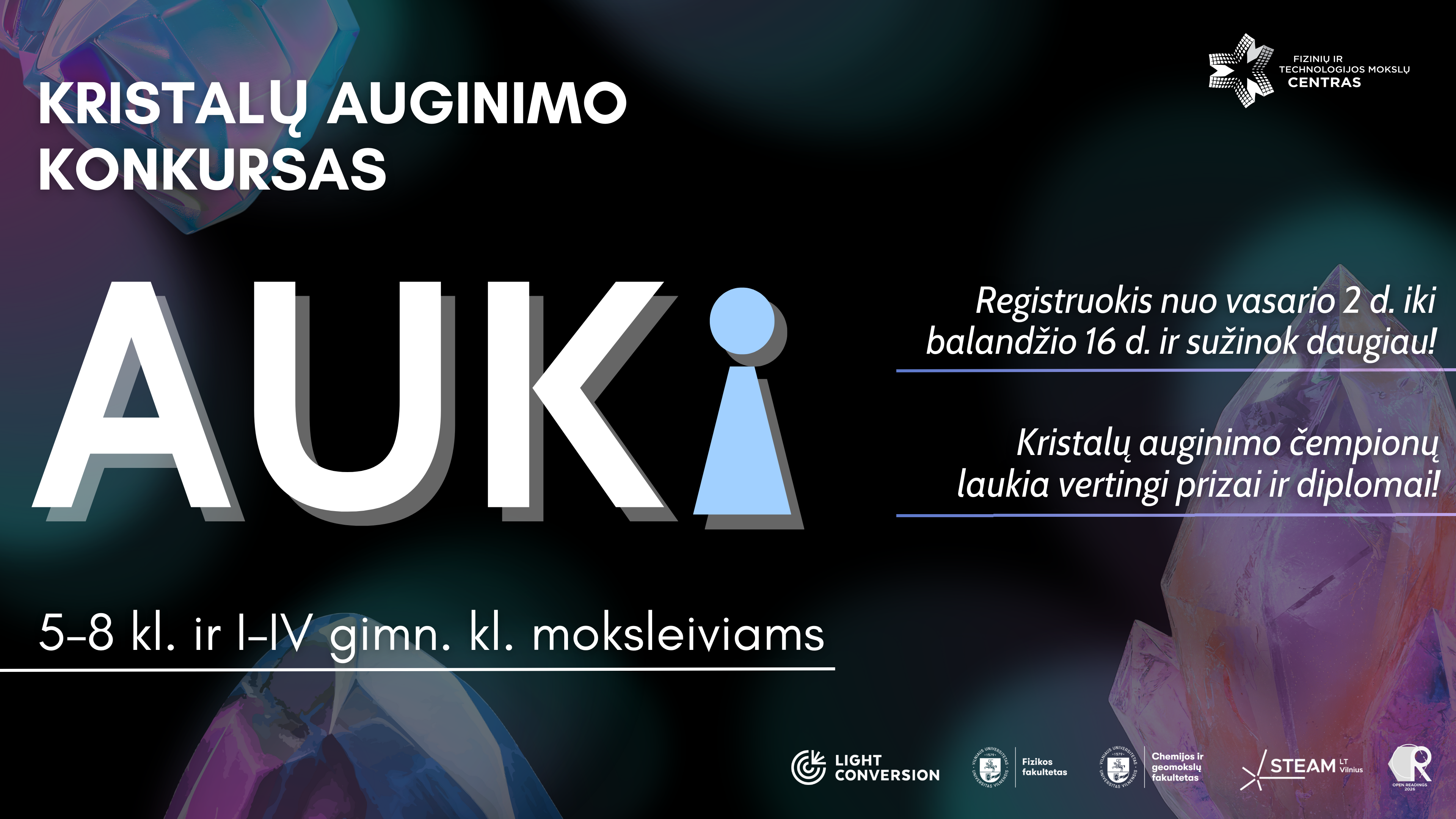 Tad kviečiame moksleivius išbandyti tikrą mokslininkų darbą! Patirkite atradimo džiaugsmą dalyvaudami kristalų auginimo konkurse „AUK¡“.