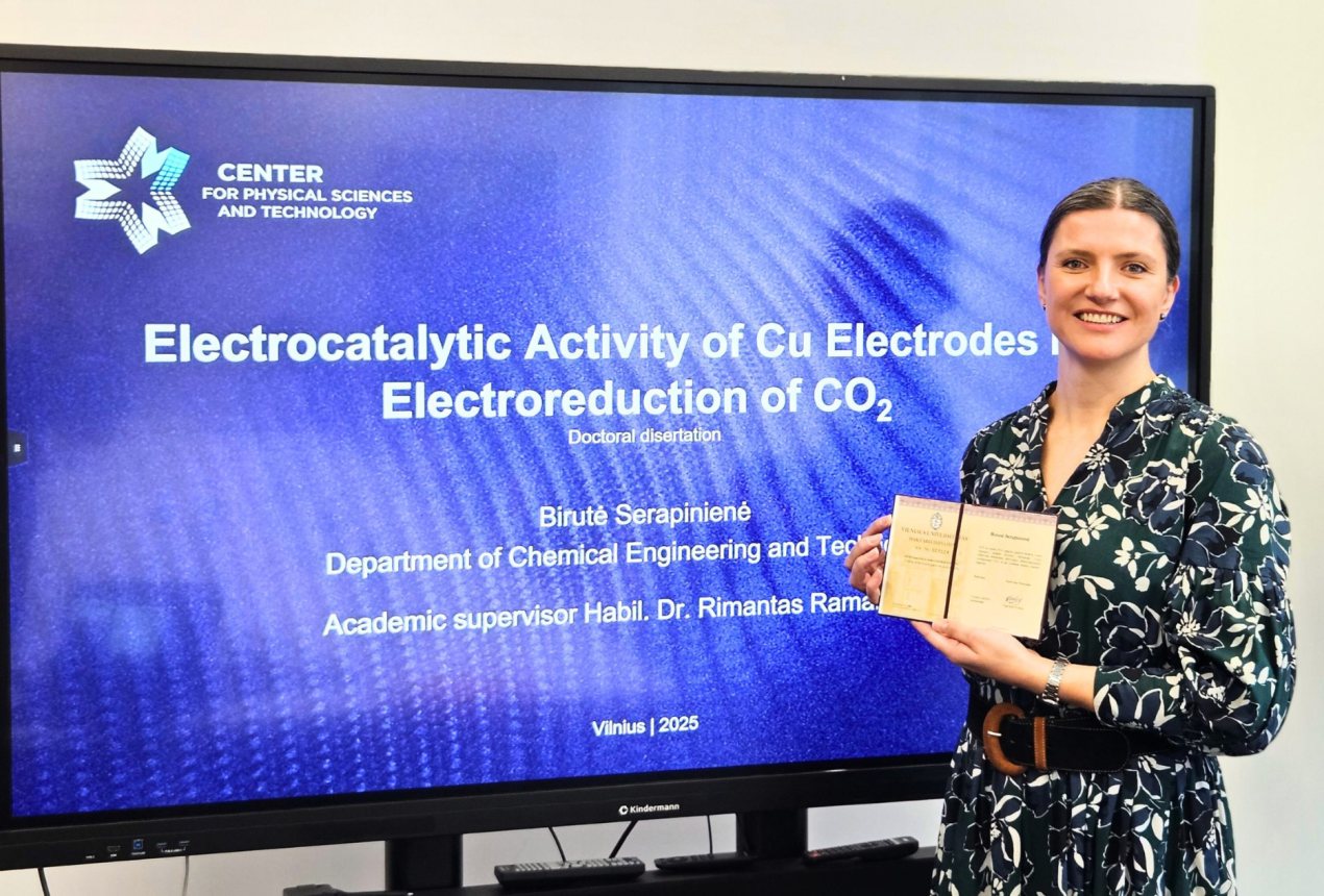Tad FTMC mokslininkė savo darbe tobulino vario elektrodus, o varis yra vienas tinkamiausių katalizatorių CO₂ redukcijai.