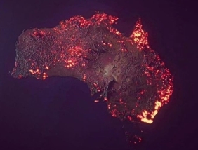 Pasaulio žiniasklaidoje ir socialiniuose tinkluose plintant katastrofos Australijoje vaizdams, ypatingo populiarumo sulaukė iliustracija, kurioje matomas liepsnų apimtas žemynas.