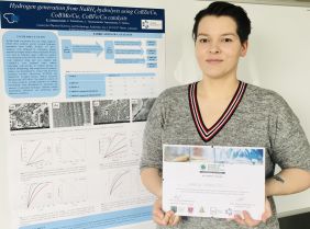 Jos pranešimas „Hydrogen generation from NaBH4 hydrolysis using CoBZn/Cu, CoBMo/Cu, CoBFe/Cu catalysts“ buvo pripažintas geriausiu stendiniu pranešimu. Sveikiname Korneliją!