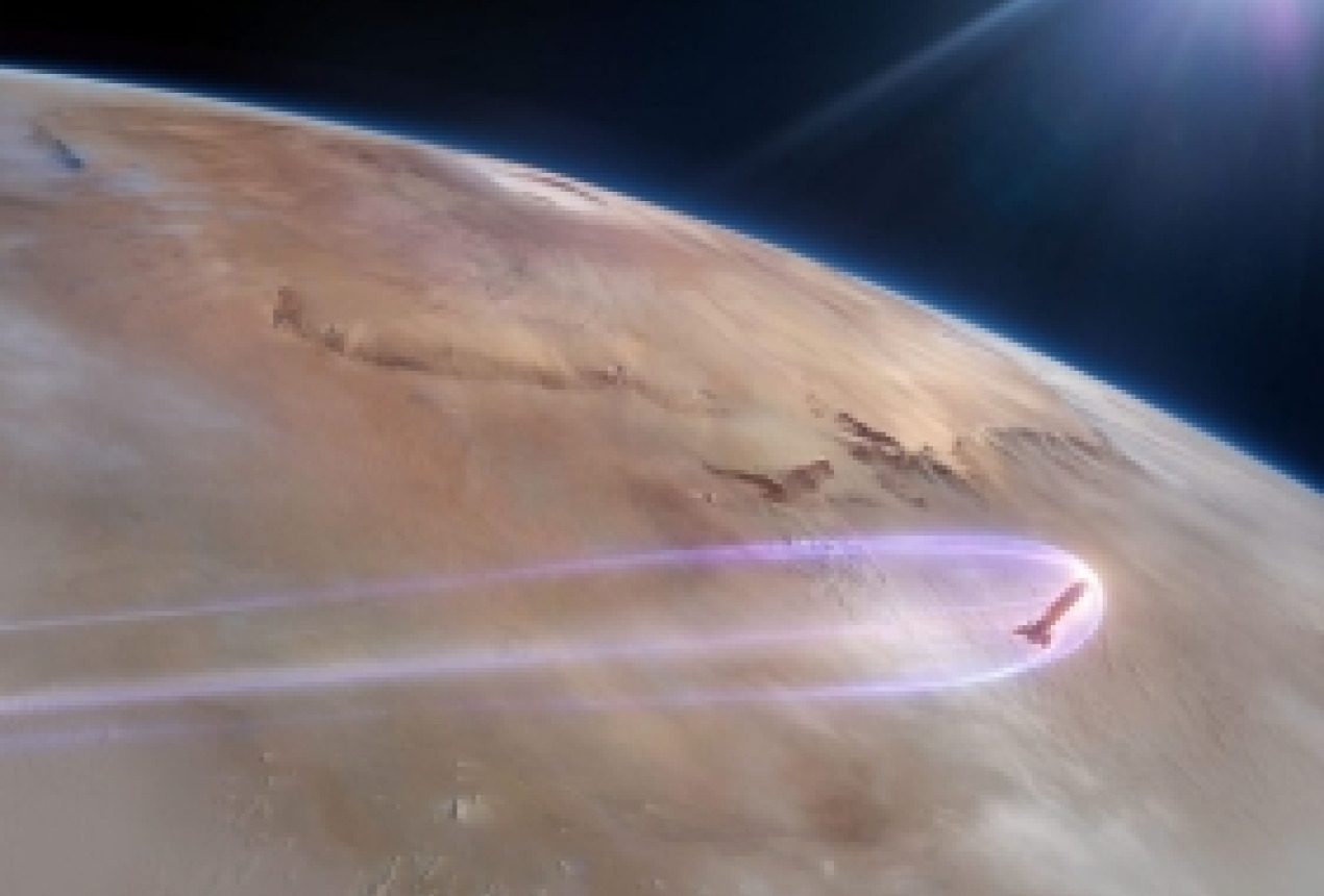 SpaceX Starship Marso atmosferoje. Dailininko iliustracija. Šaltinis: SpaceX