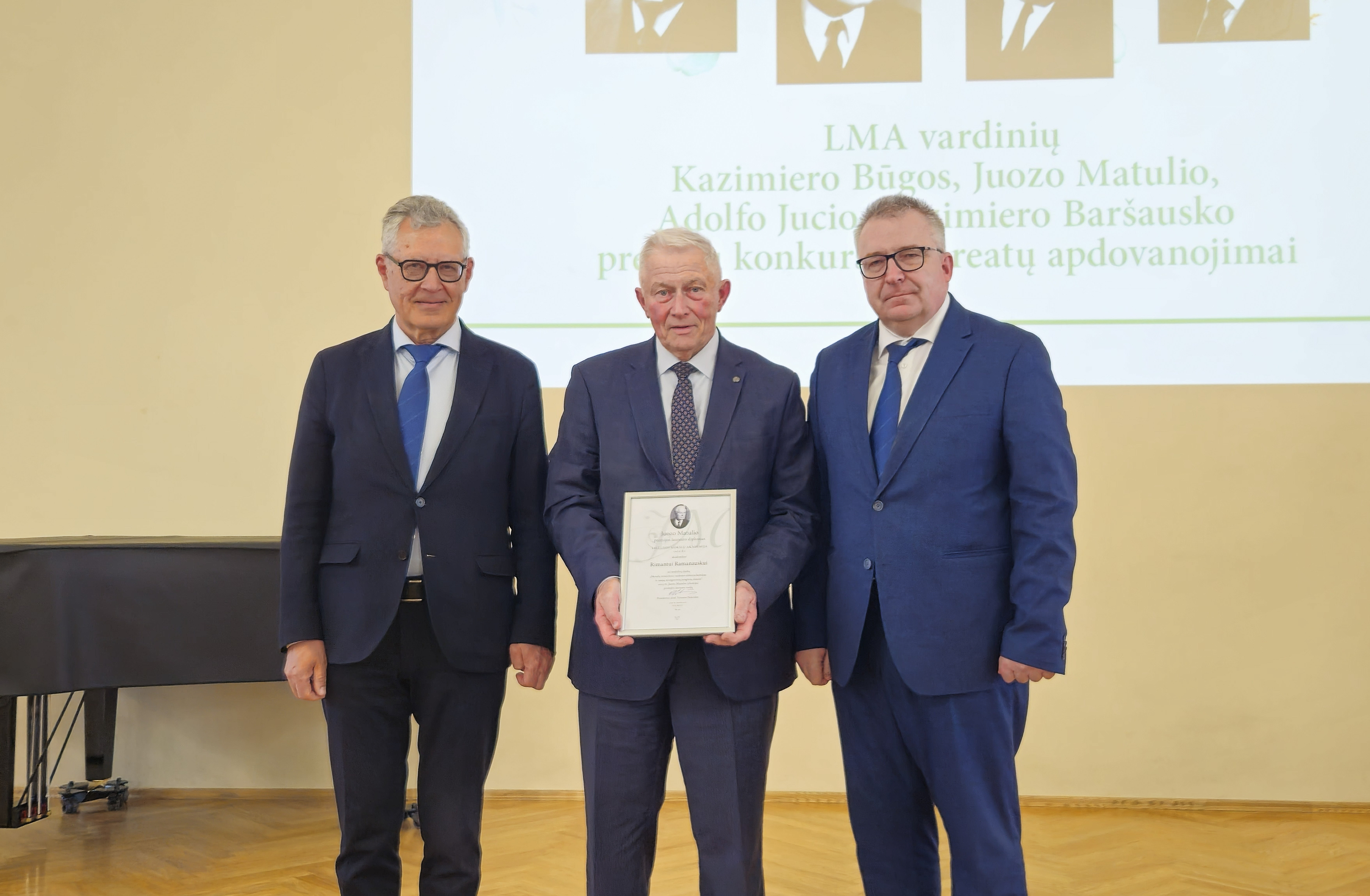 (Prof. dr. Ričardas Makuška, prof. habil. dr. Rimantas Ramanauskas ir LMA prezidentas prof. habil. dr. Vytautas Nekrošius. FTMC nuotr.)