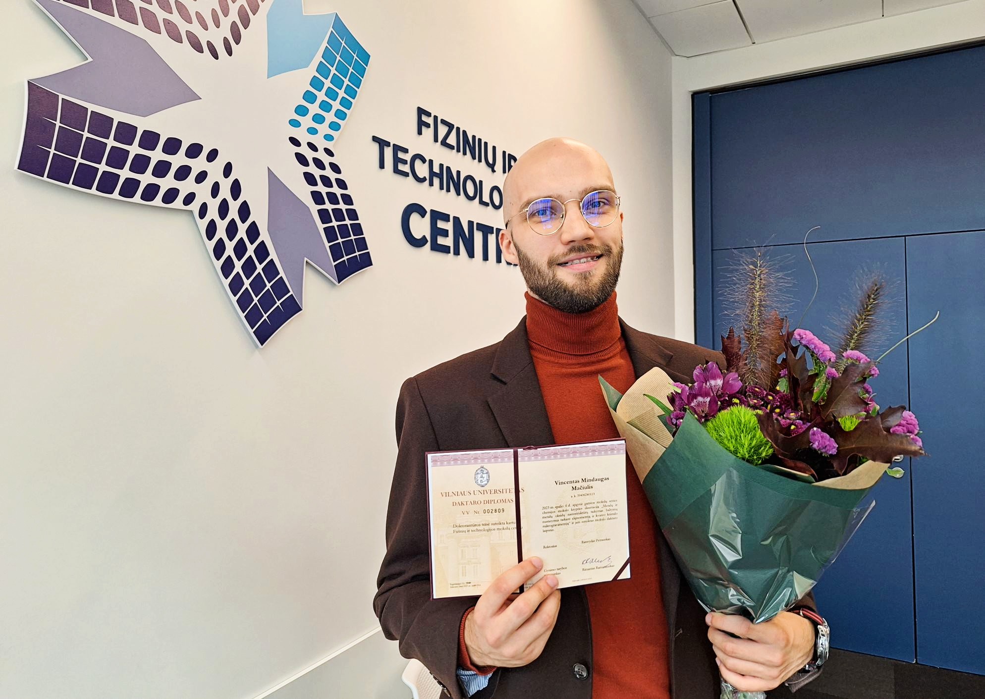 FTMC Nanotechnologijų skyriaus chemikas Vincentas Mindaugas Mačiulis apgynė disertaciją „Metalų ir metalų oksidų nanostruktūrų taikymas baltymų nustatymui taikant elipsometriją ir kvarco kristalo mikrogravimetriją“ (mokslinė vadovė: dr. Ieva Plikusienė).