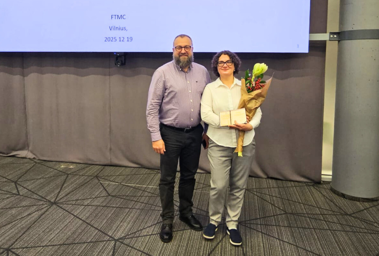 Prieš šv. Kalėdas FTMC Funkcinių medžiagų ir elektronikos skyriaus chemikė Neringa Bakutė sau įteikė puikią dovaną – gruodžio 19 d. ji apgynė daktaro disertaciją „Biomedžiagų biologinio suderinamumo, ląstelių adhezijos ir jų pritaikymo mikroskysčių sistemose tyrimai“ (mokslinis vadovas: dr. Arūnas Stirkė).