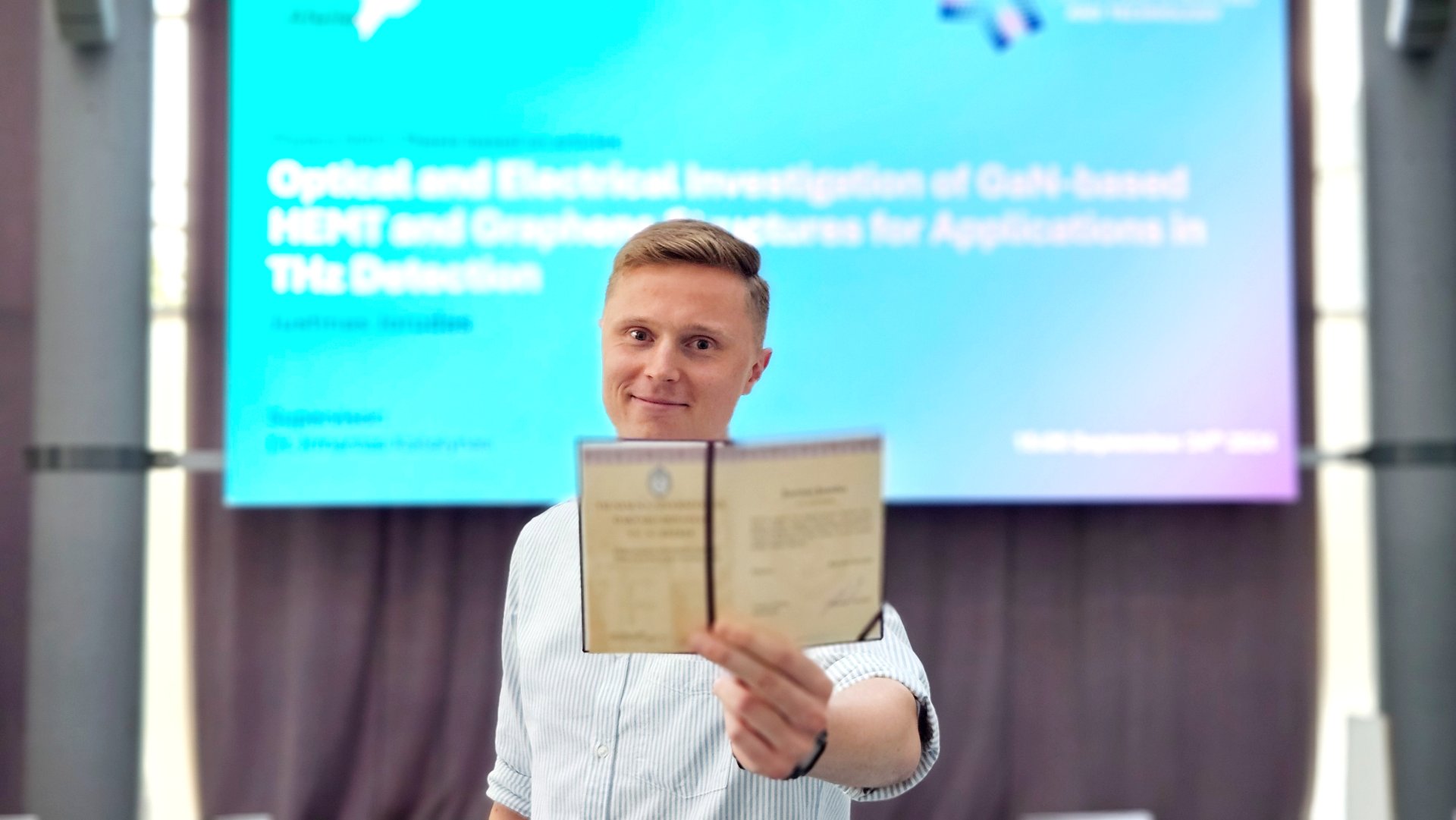 FTMC Optoelektronikos skyriaus fizikas Justinas Jorudas tapo gamtos mokslų daktaru! Šiandien jis apgynė disertaciją „GaN-pagrindu HEMT ir grafeno struktūrų, skirtų THz detektavimui, optinių ir elektrinių savybių tyrimas“ (mokslinis vadovas: dr. Irmantas Kašalynas).