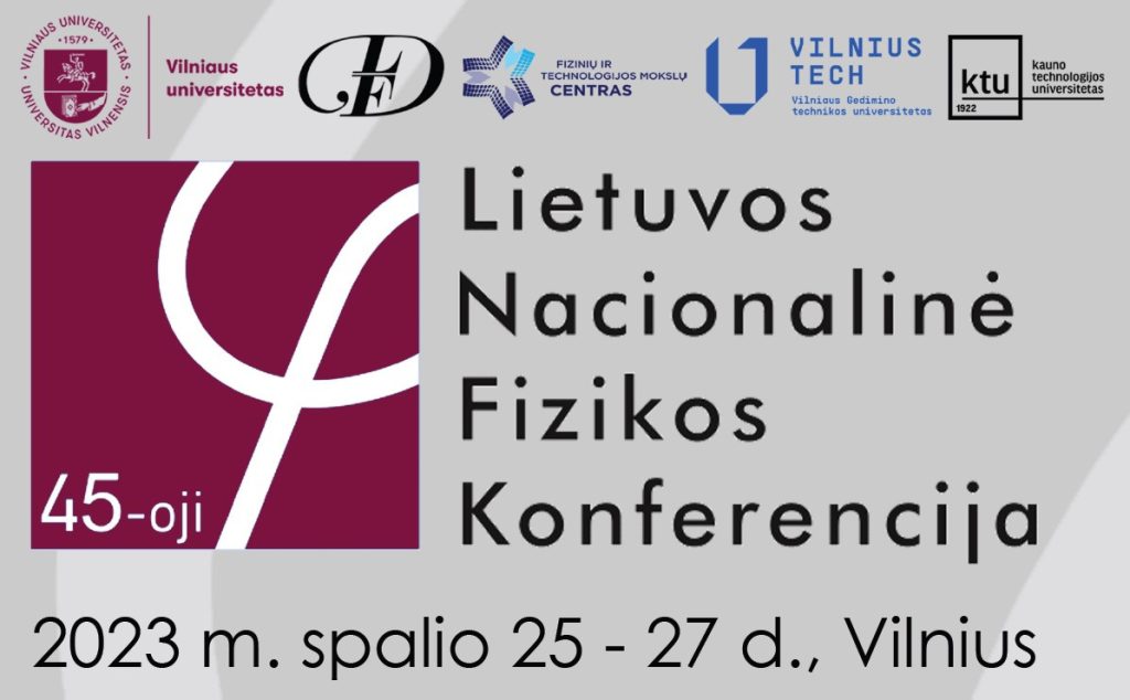 Spalio 25–27 d. Vilniuje (Saulėtekio al. 3) vyks 45-oji Lietuvos nacionalinė fizikos konferencija. Šį renginį organizuoja Vilniaus universiteto Fizikos fakultetas.