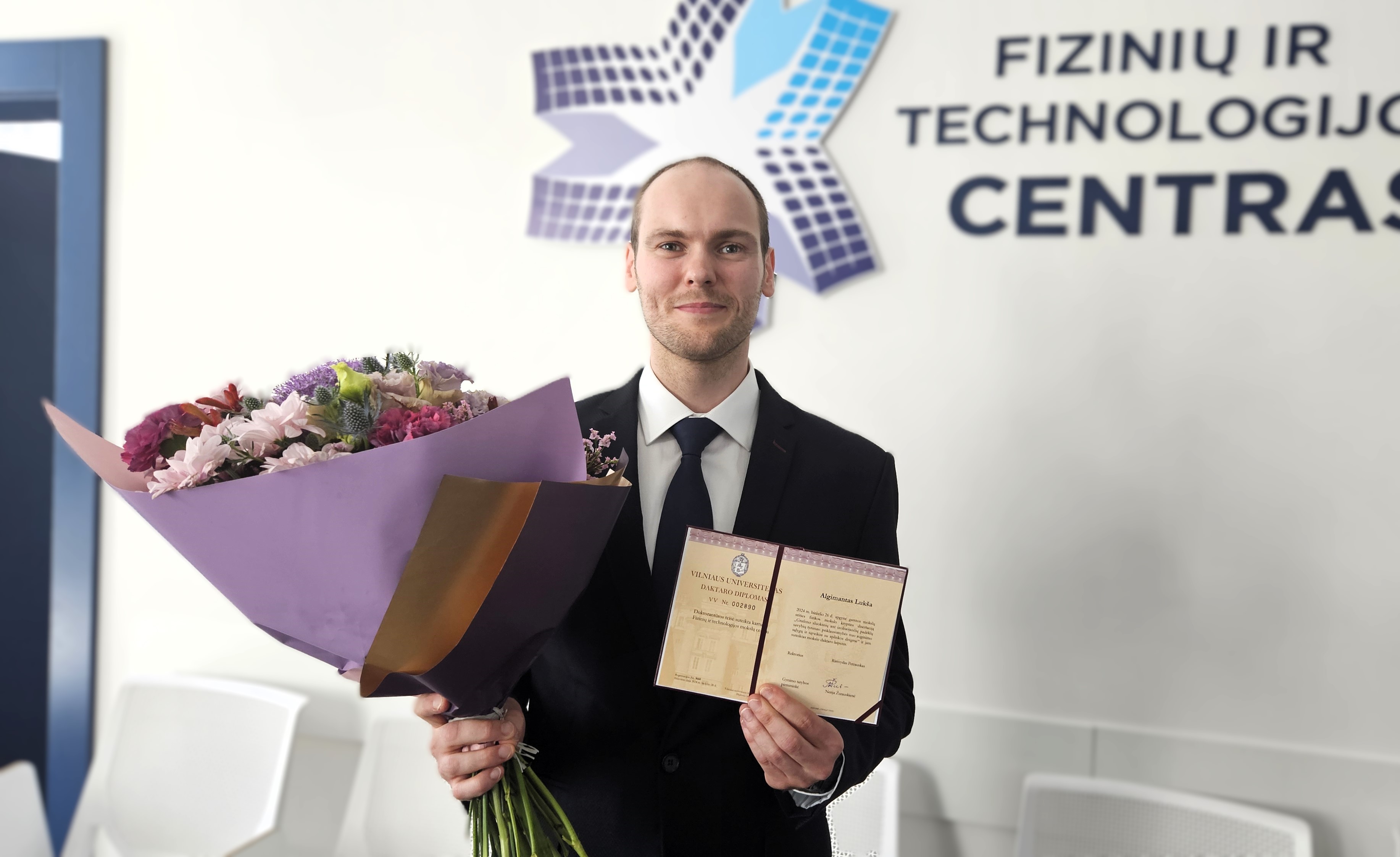 FTMC Fizikinių technologijų skyriaus mokslininkas Algimantas Lukša tapo gamtos mokslų daktaru. Jis apgynė disertaciją „Grafeno sluoksnių ant izoliuojančių padėklų savybių tyrimas: priklausomybės nuo auginimo sąlygų ir sąveikos su aplinkos drėgme“ (mokslinis vadovas: dr.(hp) Arūnas Šetkus).