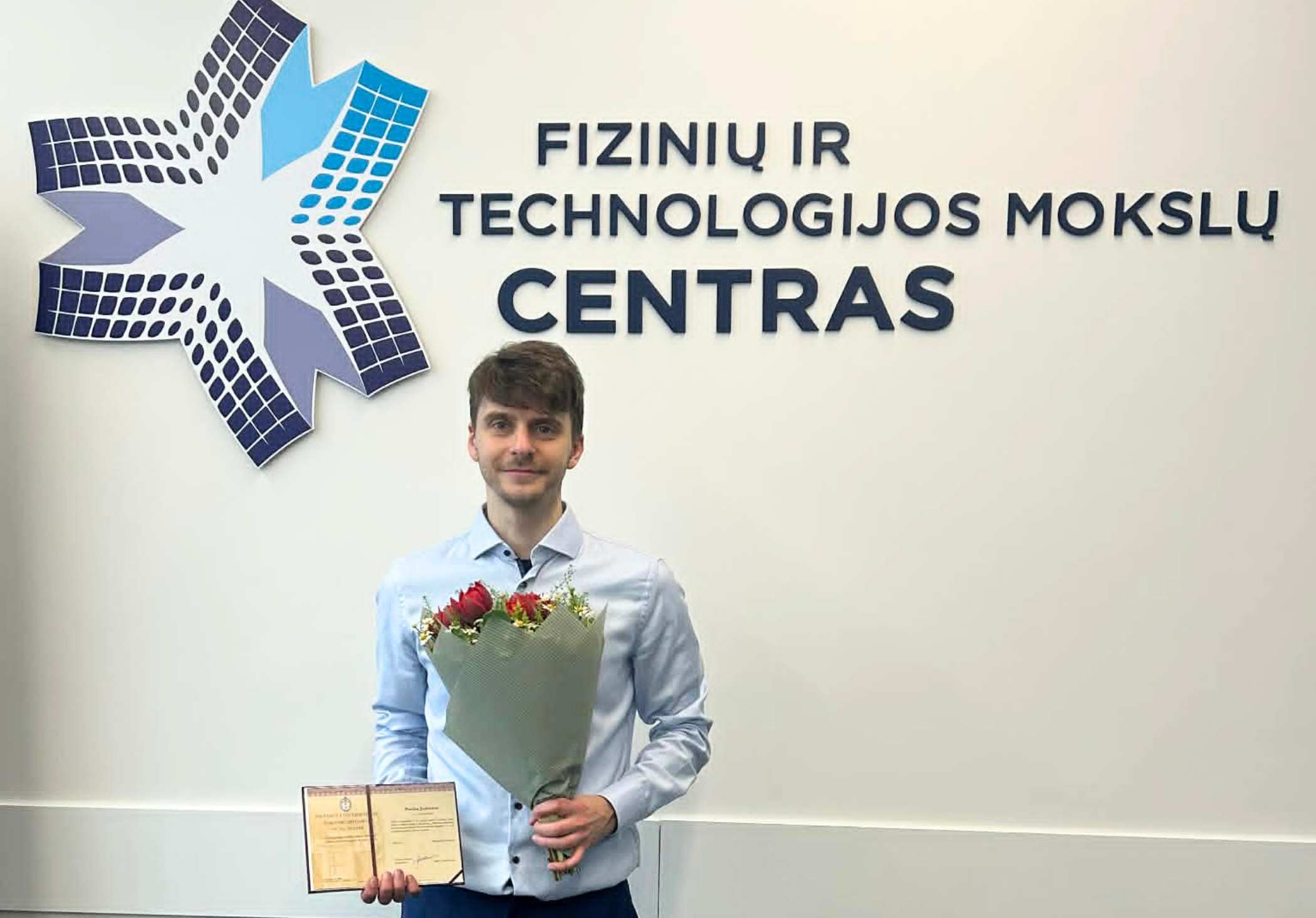 FTMC Lazerinių technologijų skyriaus fizikas Povilas Jurkšaitis tapo gamtos mokslų daktaru. Jo darbo tema – „Plazmonų-eksitonų poliaritoninių būsenų fluorescencijos dinamika“ (mokslinis vadovas: prof. dr. Zigmas Balevičius).