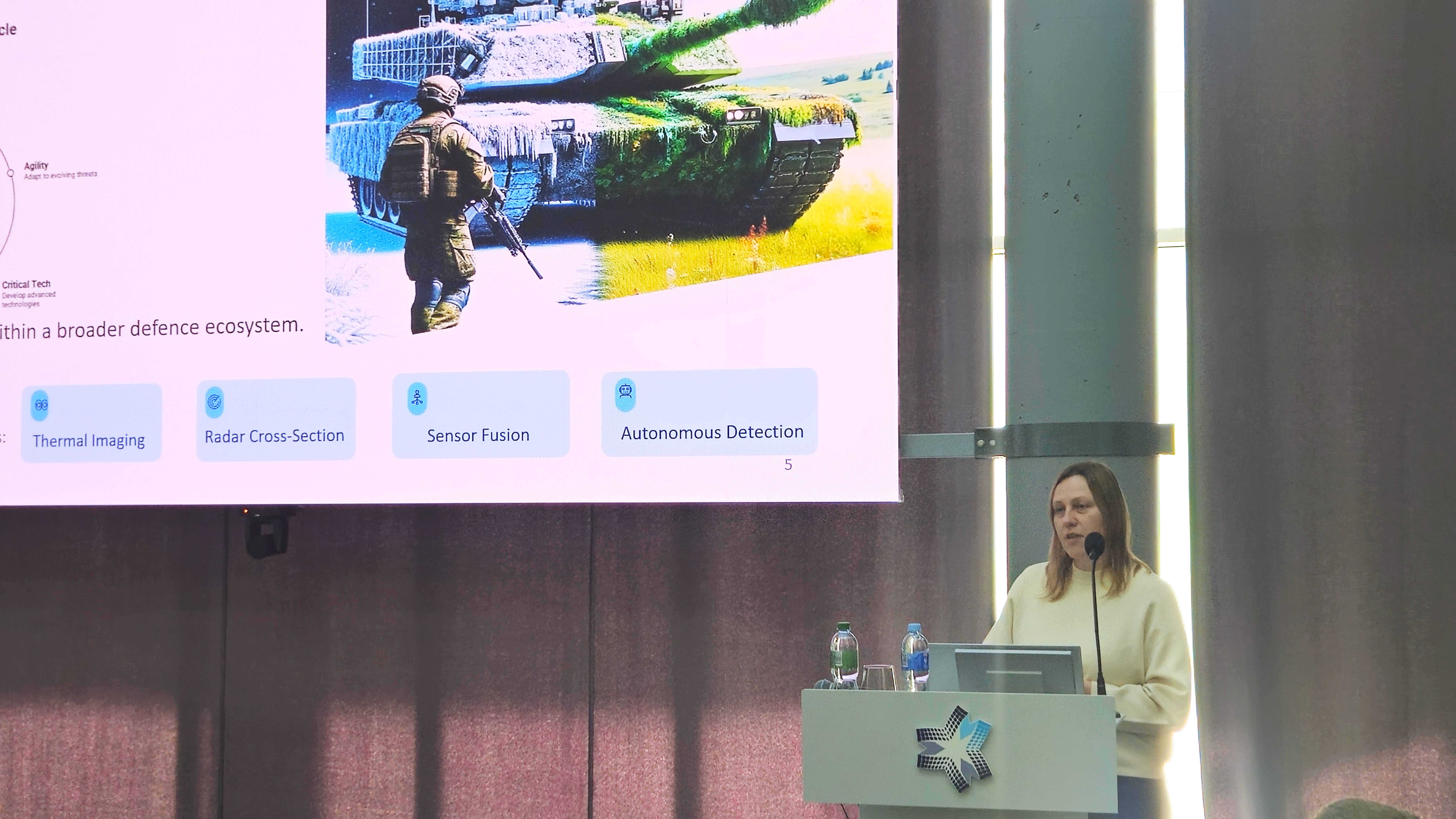 „Ar kada susimąstėte, kiek laiko praleidžiate su tekstile, drabužiais? Žinoma, didesnę dienos dalį“, – savo pranešimą pradėjo dr. Julija Baltušnikaitė-Guzaitienė, FTMC Tekstilės technologijų skyriaus vadovė. Jos intriguojanti tema – „Funkcinė tekstilė kaip antroji oda“. Mokslininkė su tarptautine komanda kuria ypatingus gynybai skirtus drabužius, kurių tikslas – visapusiškai apsaugoti karį.