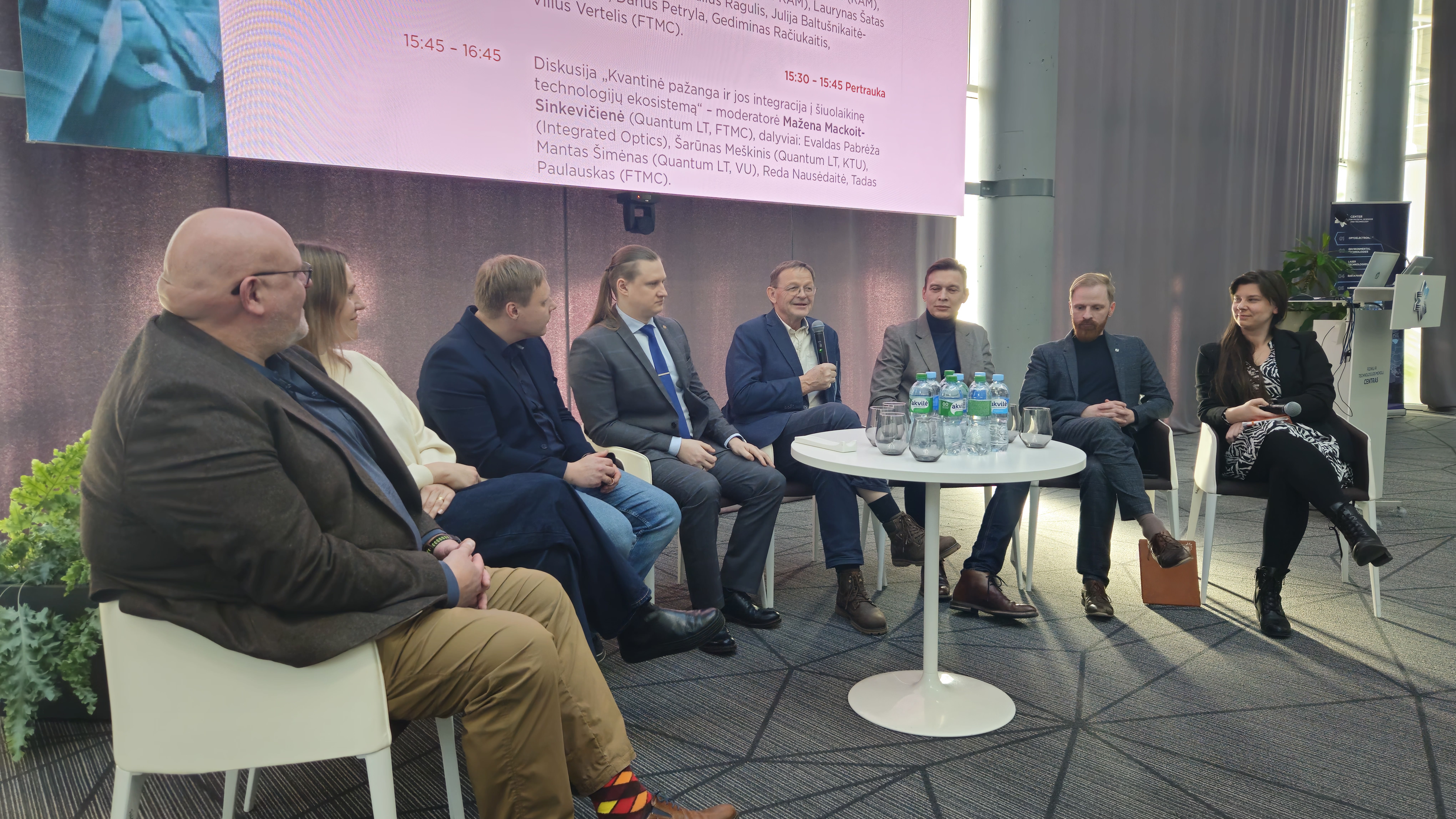 Pirmąją Metinės konferencijos dieną užbaigė diskusija „Kvantinė pažanga ir jos integracija į šiuolaikinę technologijų ekosistemą“, kurią moderavo FTMC fizikė, Lietuvos kvantinių technologijų asociacijos „Quantum Lithuania“ atstovė dr. Mažena Mackoit- Sinkevičienė. Dalyvavo FTMC direktoriaus pavaduotoja inovacijoms ir plėtrai dr. Reda Nausėdaitė, taip pat – Evaldas Pabrėža („Integrated Optics“), dr. Šarūnas Meškinis („Quantum Lithuania“, Kauno technologijos universitetas), dr. Mantas Šimėnas („Quantum Lithuania“, Vilniaus universitetas) ir dr. Tadas Paulauskas (FTMC Optoelektronikos skyrius).