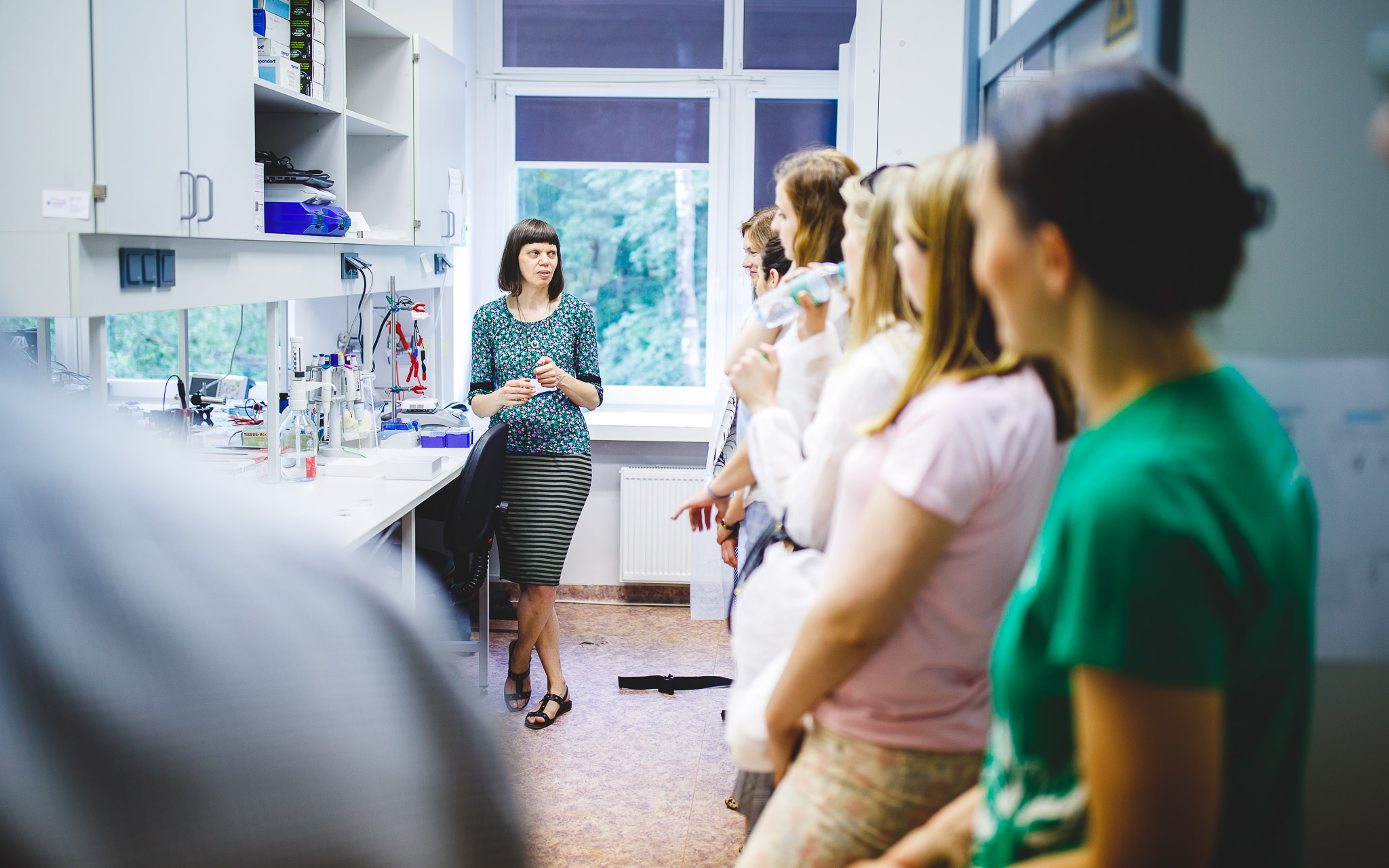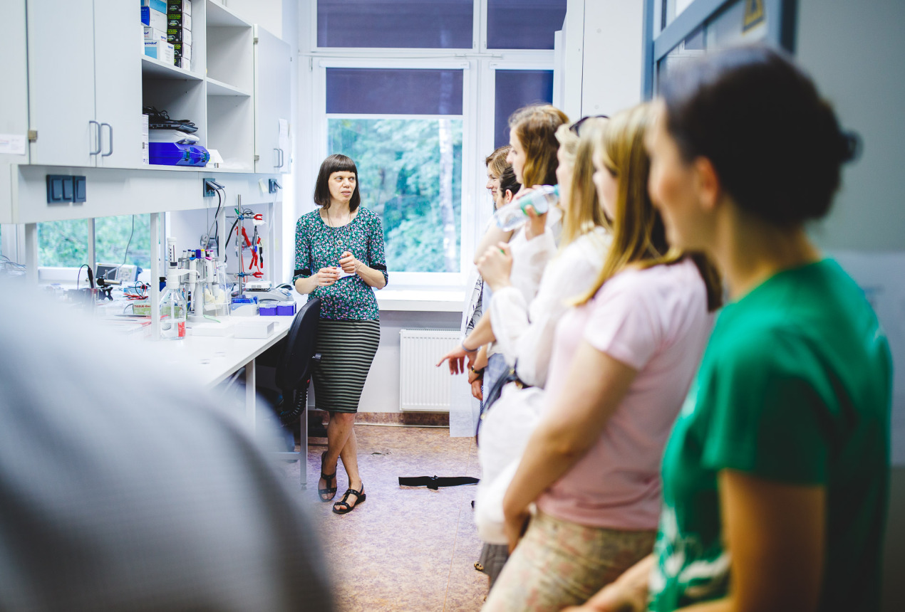 „Horizontas 2020“ individualaus projekto „WoundSens“ vadovė, susirinkusioms ekskursijos dalyvėms papasakojo apie savo vykdomą veiklą, supažindino su nanostruktūrų formavimo ir jų vizualizavimo (nes plika akimi jų pamatyti neįmanoma) būdais Nanoformavimo ir biolustų laboratorijoje. Ir padrąsino dalyves rinktis technologines specialybes, nes juk merginos turi tam visas reikiamas savybes: kantrumą, atidumą ir nuoseklumą!