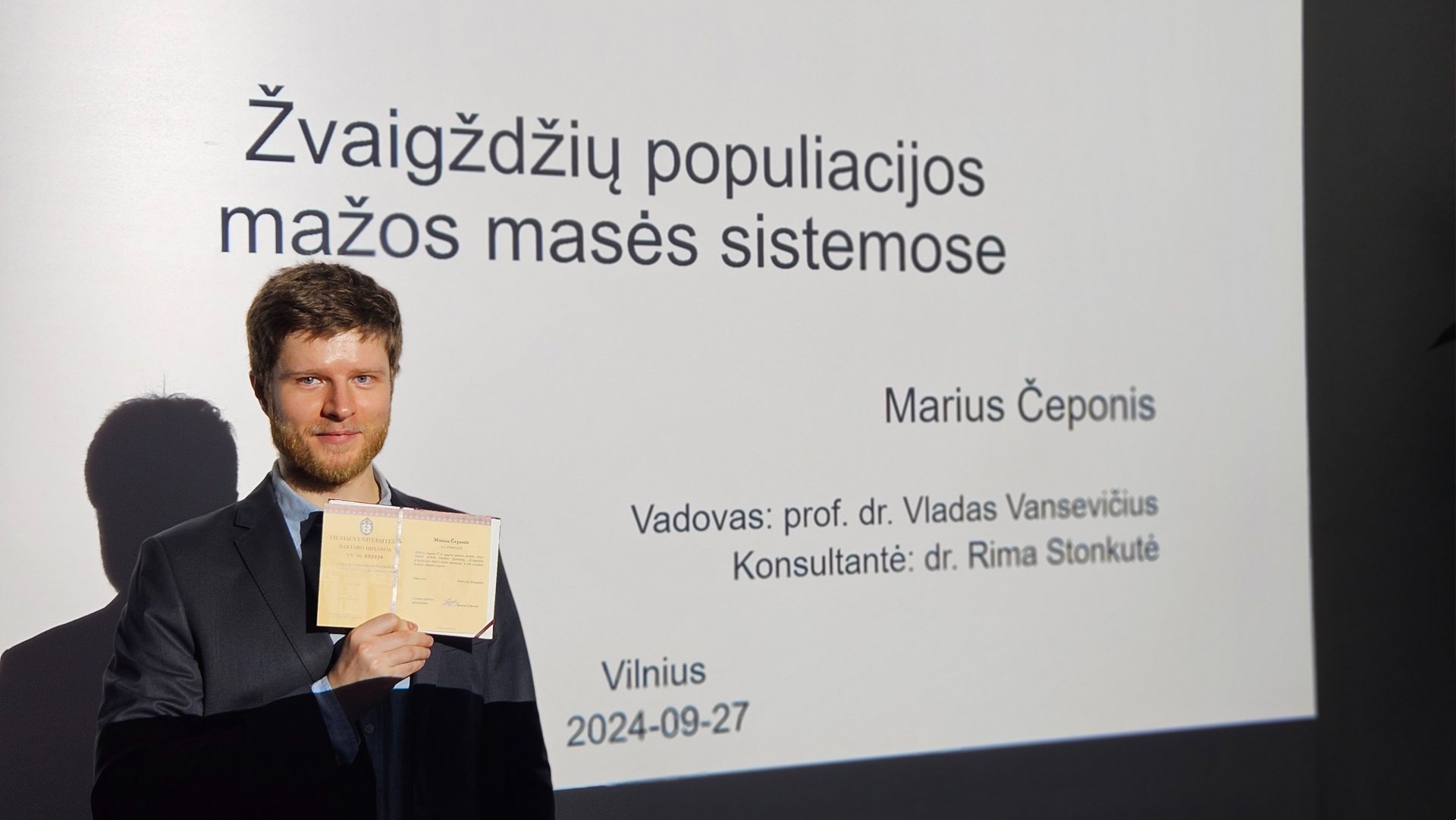 FTMC Fundamentinių tyrimų skyriaus astrofizikas Marius Čeponis tapo gamtos mokslų daktaru. Jo apginta disertacija – „Žvaigždžių populiacijos mažos masės sistemose“ (mokslinis vadovas: prof. dr. Vladas Vansevičius, konsultantė: dr. Rima Stonkutė).