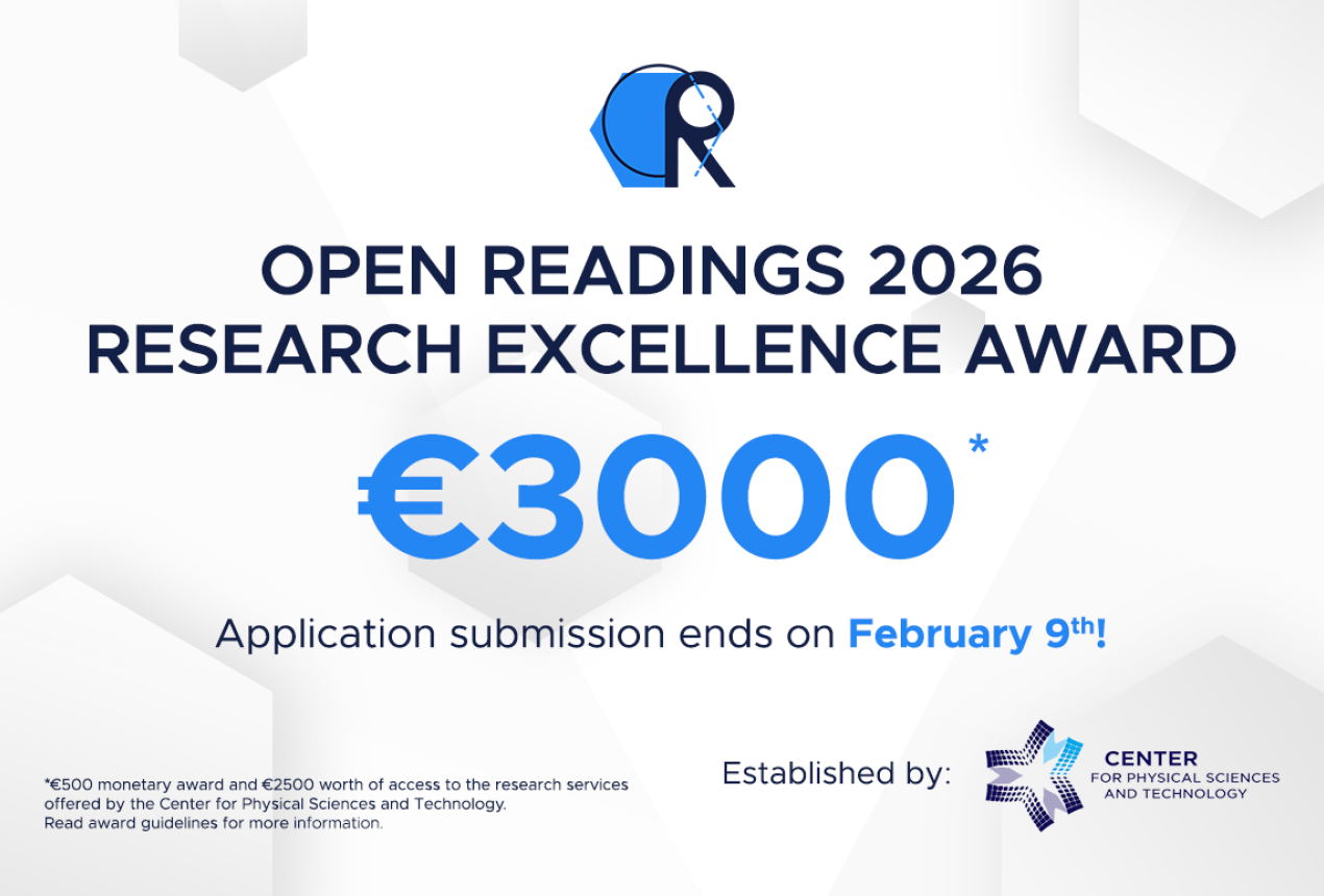 The upcoming “Open Readings 2026” conference for students and young researchers presents a prestigious award which celebrates the outstanding achievements of students in physics and natural sciences – the “Open Readings Research Excellence Award”, established by the Center for Physical Sciences and Technology (FTMC).