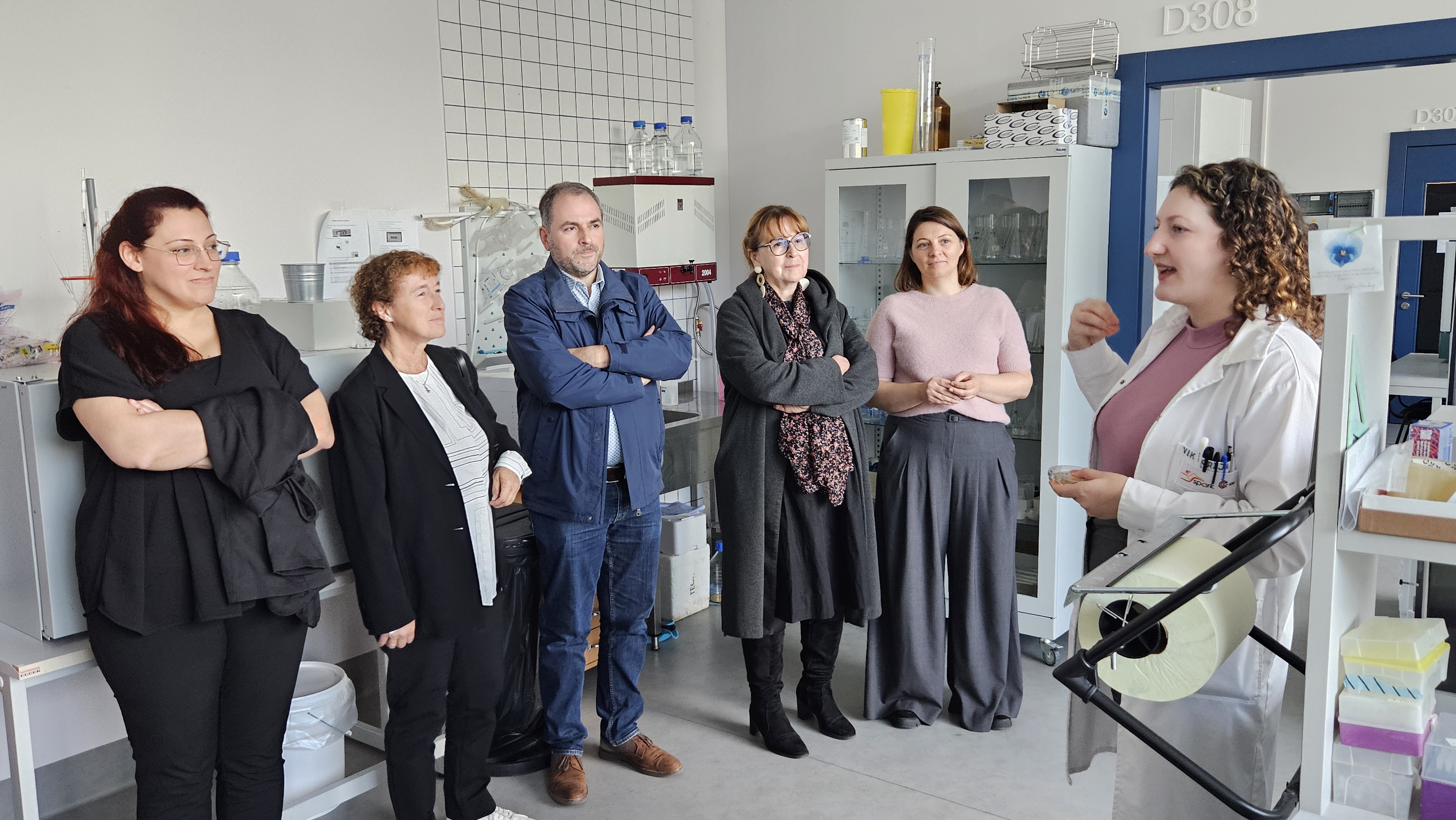 (PhD student Viktorija Reinikovaitė from the Bioelectrics Laboratory, Department of Functional Materials and Electronics at FTMC, with EARTO representatives and Rasa Kulvietienė, Director of RTO Lithuania (second from the right). Photo: FTMC)