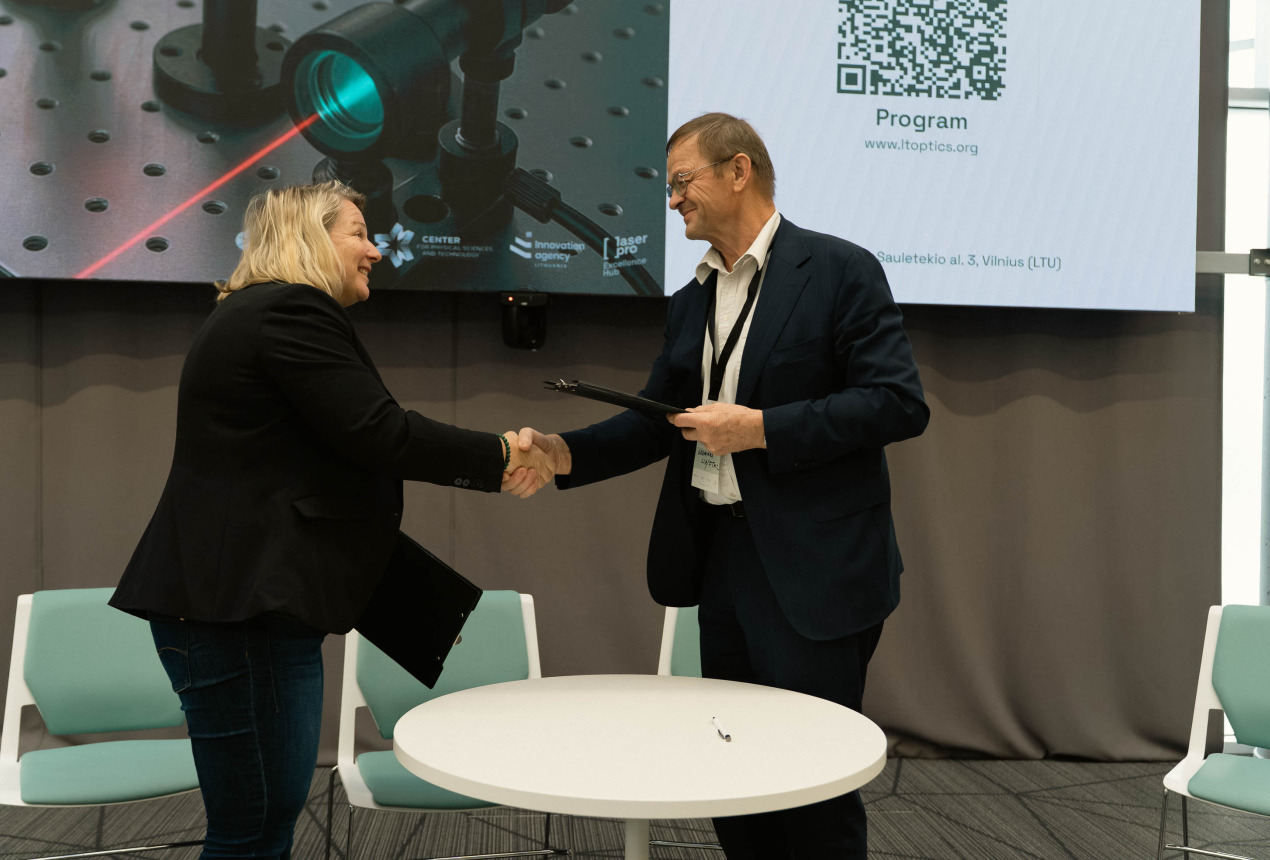 One of the key moments of the event was the signing of a Memorandum of Understanding between the Lithuanian Laser Association (LLA) and the Czech Optical Cluster. These organizations unite more than 60 and 45 institutions respectively, active in the fields of laser and photonics technologies.