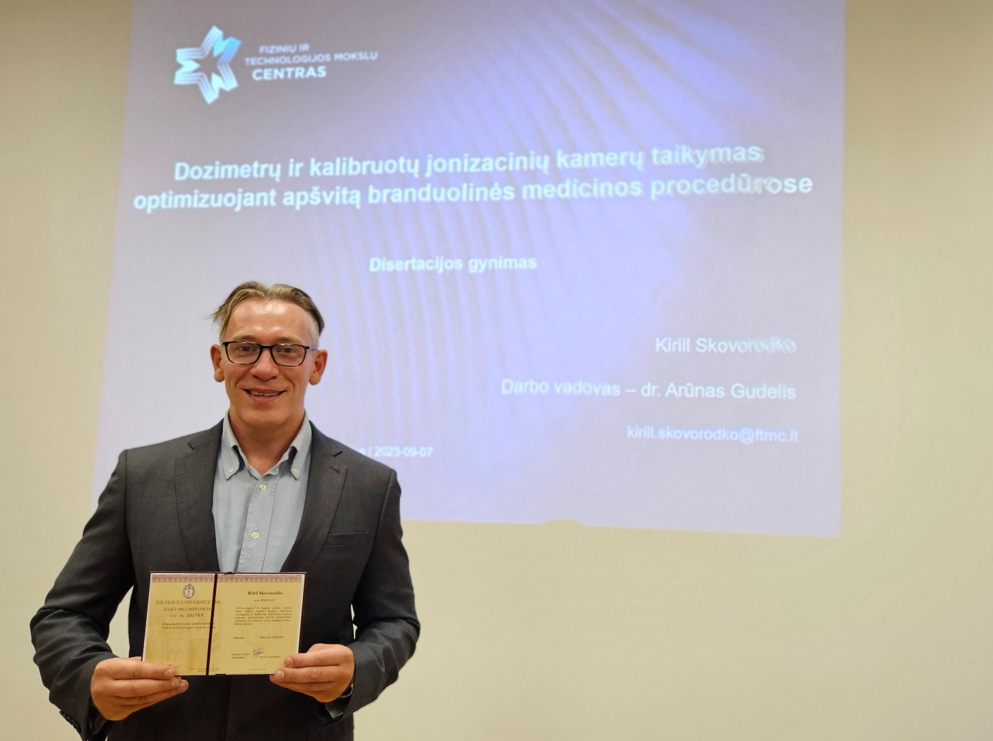 Kirill Skovorodko, a scientist of the Department of Nuclear Research at FTMC, has defendend his PhD. He also works at Vilnius University Hospital Santaros Klinikos and is the President of the Lithuanian Medical Physicists Society.