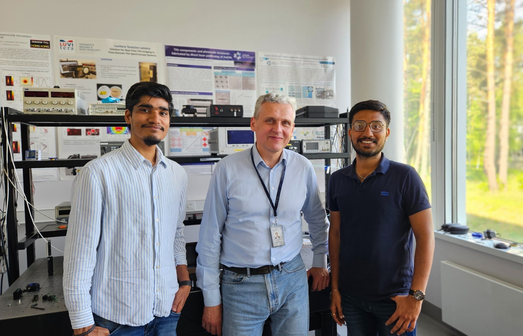 Ashish Kumar, a PhD student at Charles III University of Madrid (UC3M), Spain who is here at FTMC for his one-month secondment under the guidance of Dr. Irmantas Kašalynas head of Terahertz photonics laboratory at FTMC. The purpose of his visit was to explore the coupling mechanism of free-space terahertz (THz) radiation into a dielectric waveguide. And on the very last day of his training at FTMC astonishingly, he with the help of Surya Revanth Ayyagari, a PhD student at FTMC, achieved a breakthrough by successfully demonstrating a free-space THz radiation coupled to a waveguide capable of transmitting a signal with a bandwidth of over 100 gigahertz.