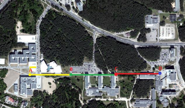 Kur? Saulėtekio alėja nuo NFTMC ir VU GMC pastatų iki VGTU pastatų.