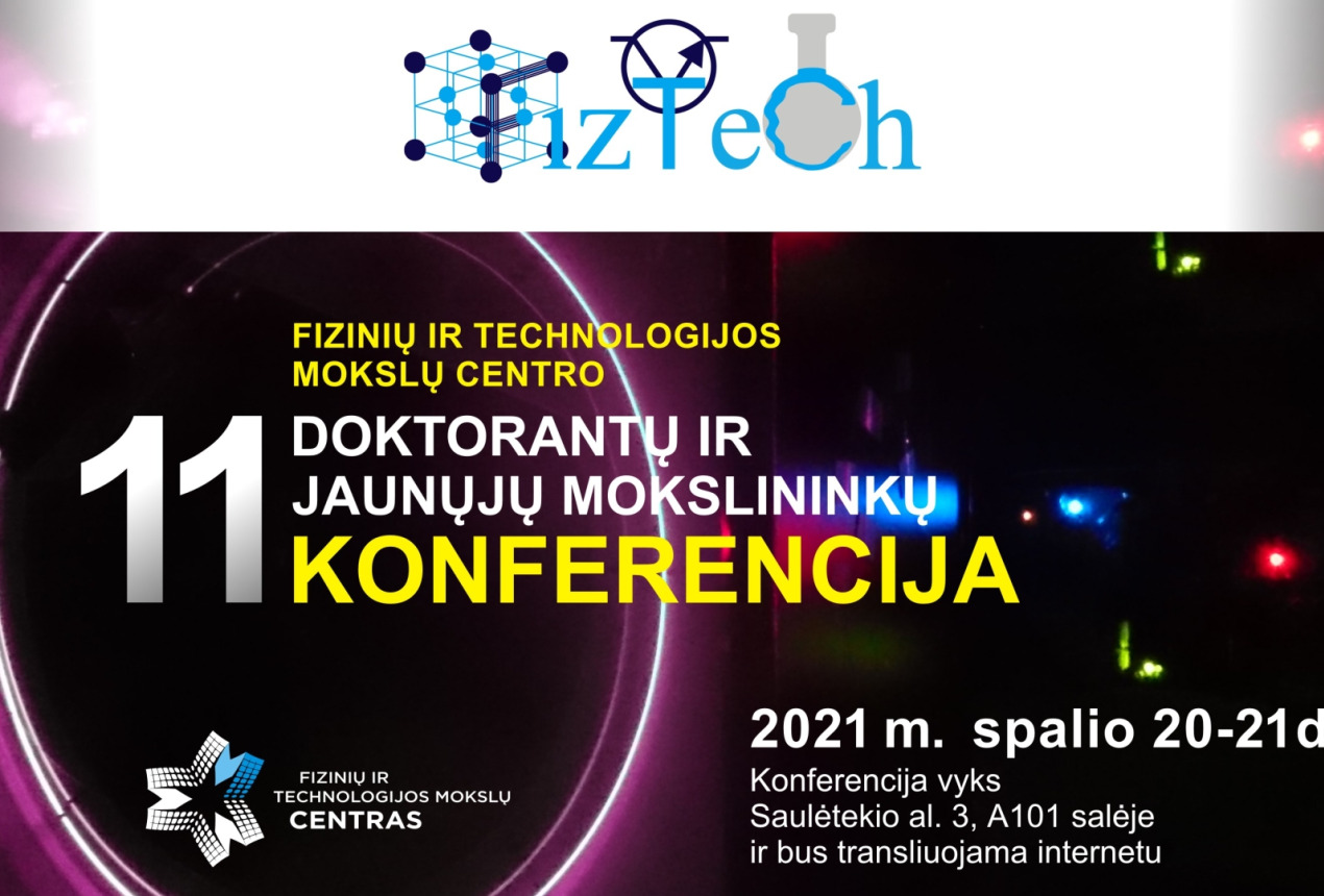 2021 m. spalio 20 – 21 d. vyks 11-ji Fizinių ir technologijos mokslų centro (FTMC) doktorantų ir jaunųjų mokslininkų konferencija FizTech2021, kurios metu Fizikos, Chemijos, Medžiagų inžinerijos bei Elektros ir elektronikos inžinerijos mokslo krypčių doktorantai pristatys savo atliekamus mokslinius tyrimus, gautus rezultatus ir jų taikymo galimybes.