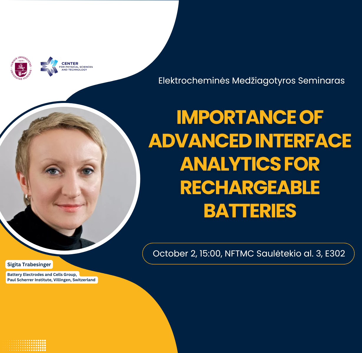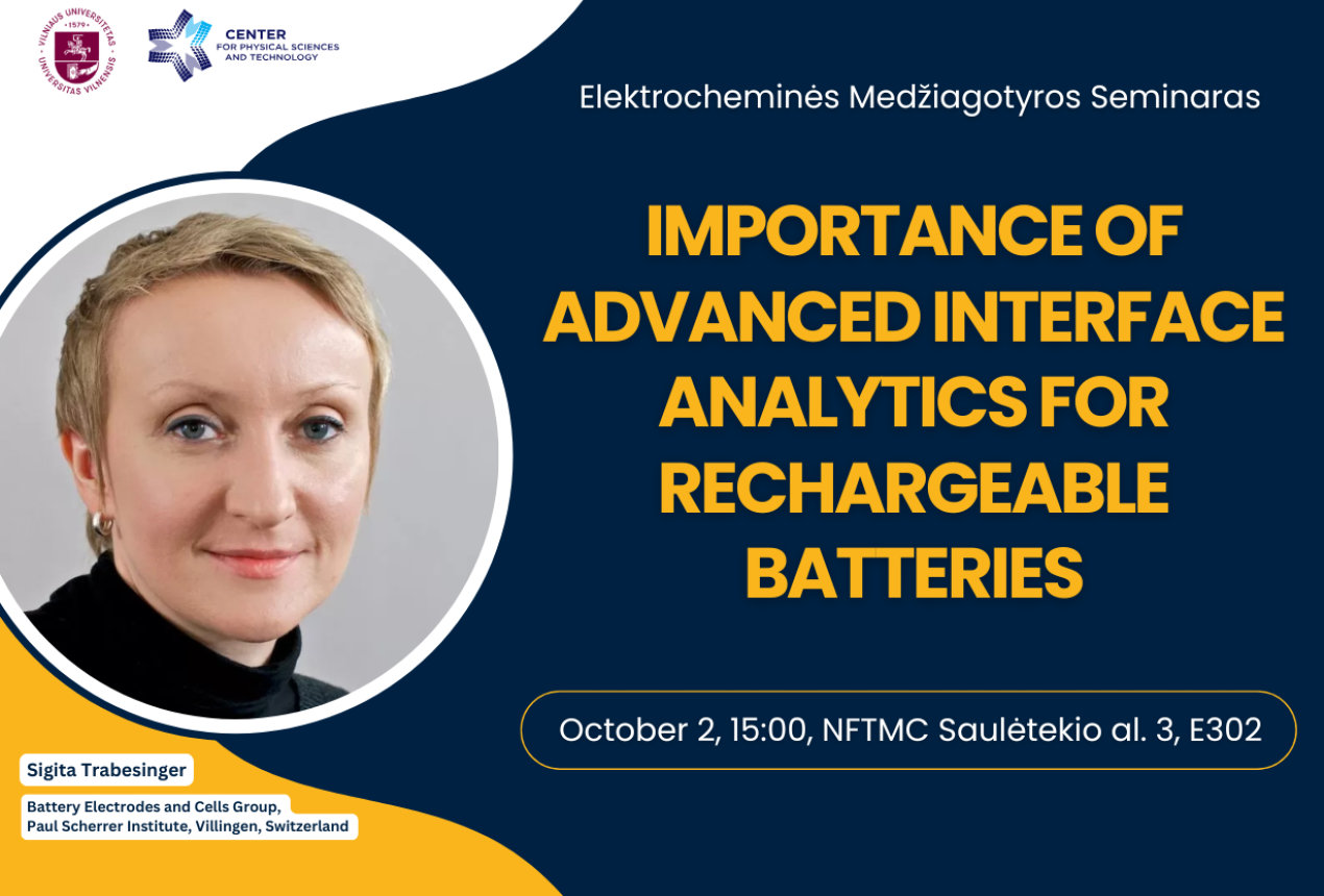 Lektorė: Sigita Trabesinger (Battery Electrodes and Cells Group, Paul Scherrer Institute, Villingen, Šveicarija).