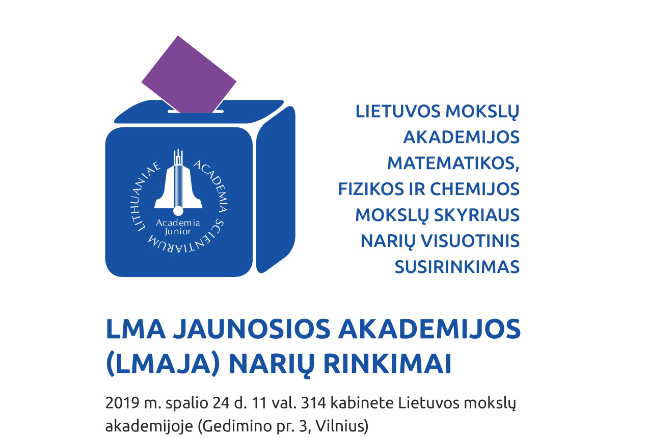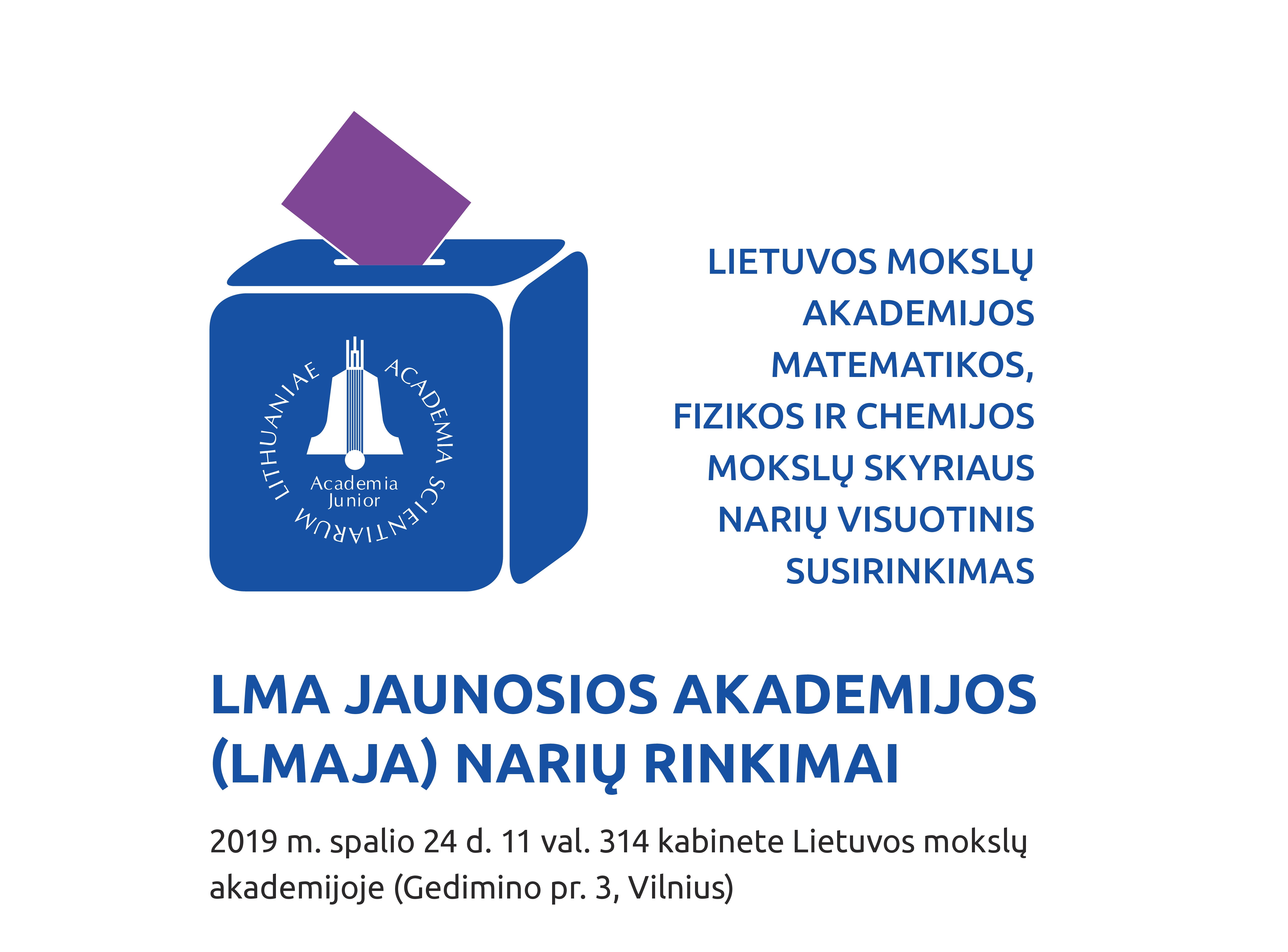 2019 m. spalio 24 d. 11 val. 314 kab. Lietuvos mokslų akademijoje (Gedimino pr. 3, Vilnius) vyks LMA Matematikos, fizikos ir chemijos skyriaus narių visuotinis susirinkimas - LMA Jaunosios akademijos (LMAJA) narių rinkimai.