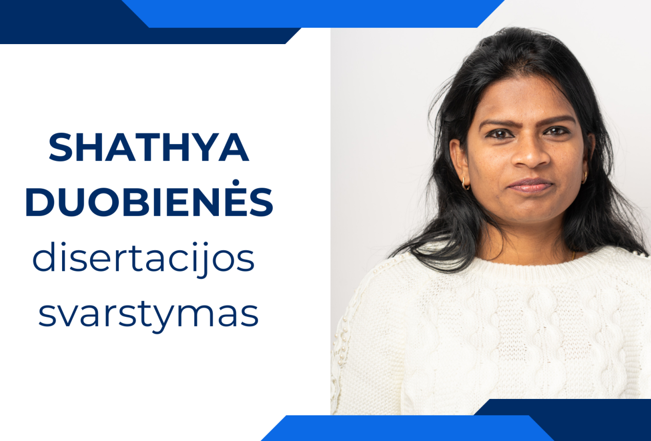 Lapkričio 14 d., ketvirtadienį, 13:00 val., D401 salėje (Saulėtekio al. 3., Vilnius) vyks doktorantės SHATHYA DUOBIENĖS technologijų krypties disertacinio darbo svarstymas.