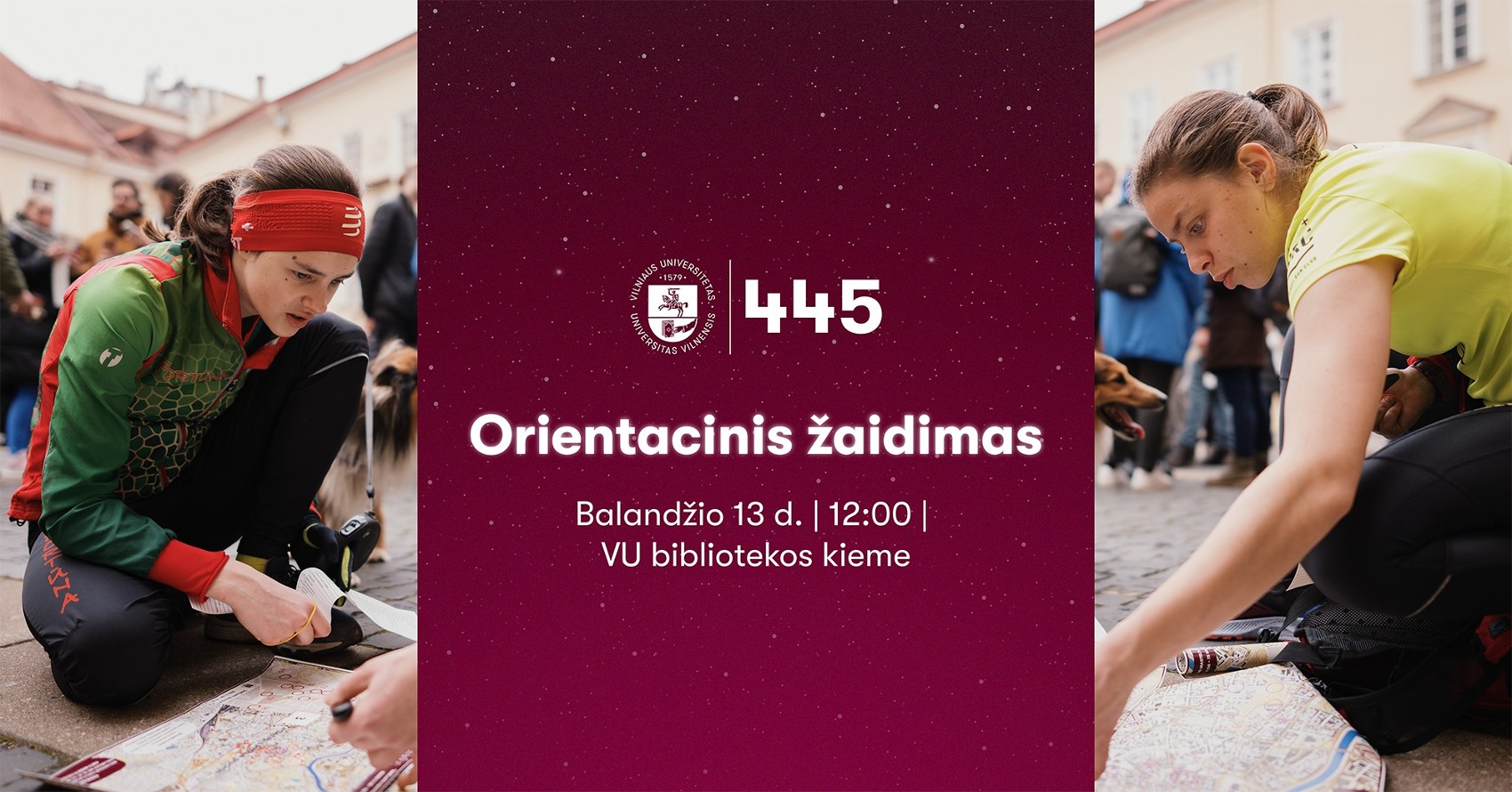 Balandžio 13 d. VU 445–ojo gimtadienio proga vyks orientacinis žaidimas, skirtas tiek universiteto bendruomenei, tiek ir kiekvienam iš mūsų. Renginio metu 1 val. 30 min. arba 3 valandas ieškosime su universitetu susijusių vietų Vilniaus mieste. Tai puiki proga einant arba bėgant pažinti ne tik universiteto, bet ir Vilniaus miesto istoriją.