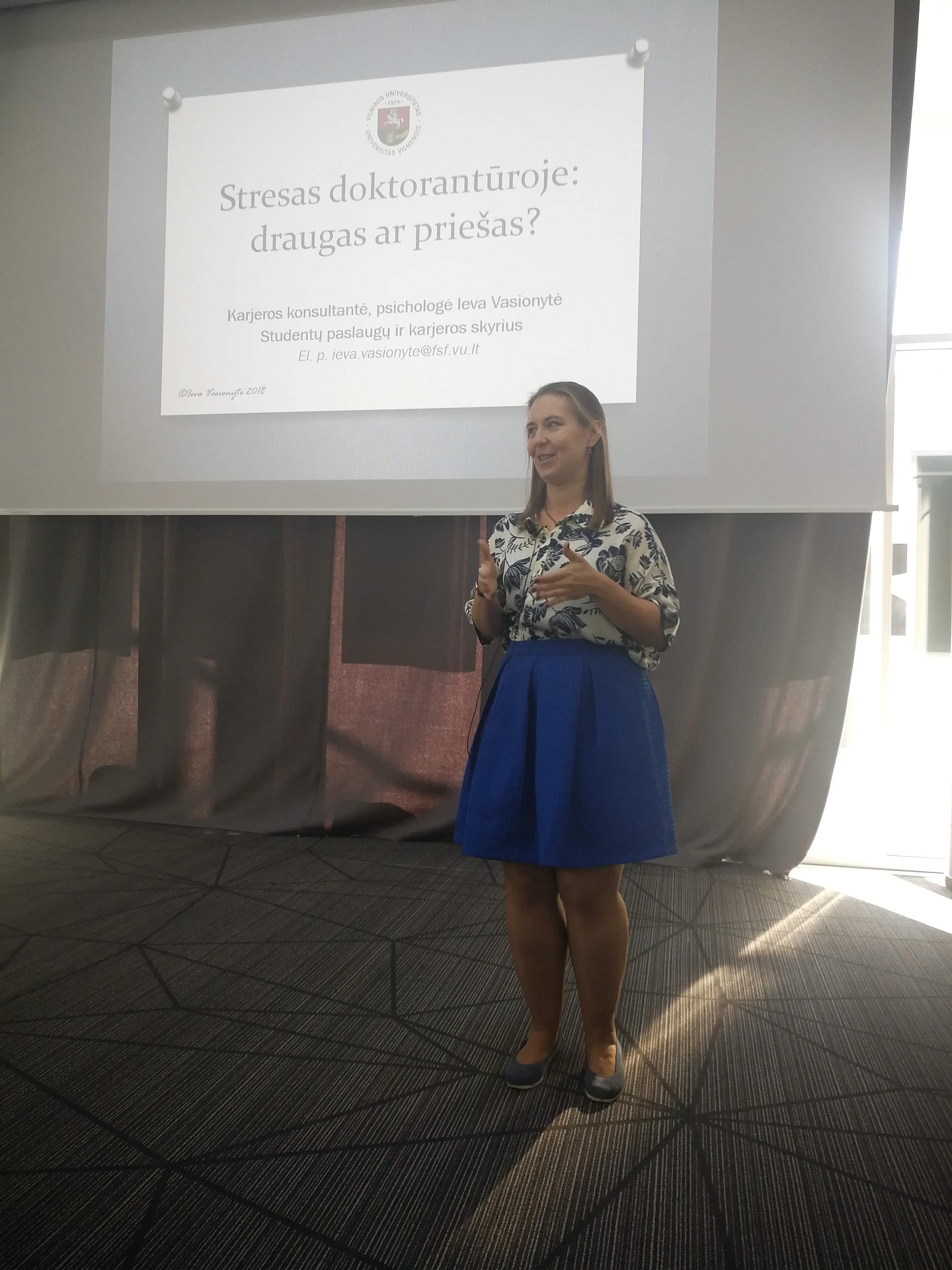 Šių metų konferencija buvo išskirtinė tuo, kad jos metu viena sesija buvo skirta kviestinei paskaitai-diskusijai „Stresas doktorantūroje: draugas ar priešas?“, kurią vedė Ieva Vasionytė, psichologė ir karjeros konsultantė iš Vilniaus Universiteto. Diskusijos metu doktorantai turėjo galimybę aptarti problemas ir klausimus, su kuriais jie susiduria doktorantūros studijų metu, bei rasti galimus jų sprendimo variantus.