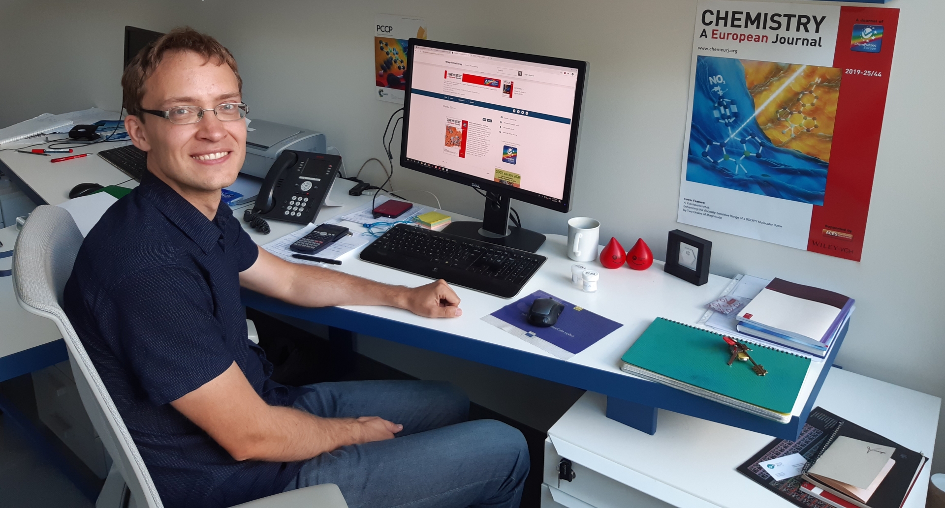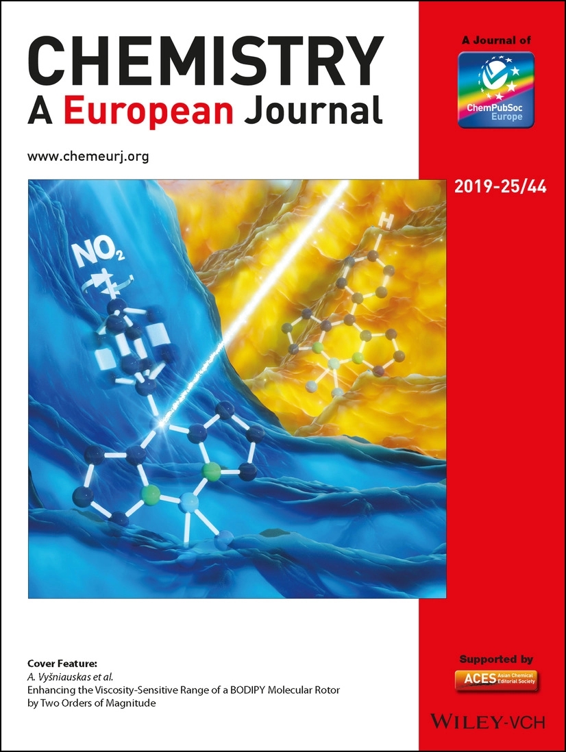 This August one of the best international journals “Chemistry: A European Journal” published scientific article of PhD Aurimas Vyšniauskas, senior research scientist of the Department of Molecular Compound Physics in the Center for Physical sciences and technology (FTMC). In addition, the illustration of the Article was printed on the cover of this magazine.
