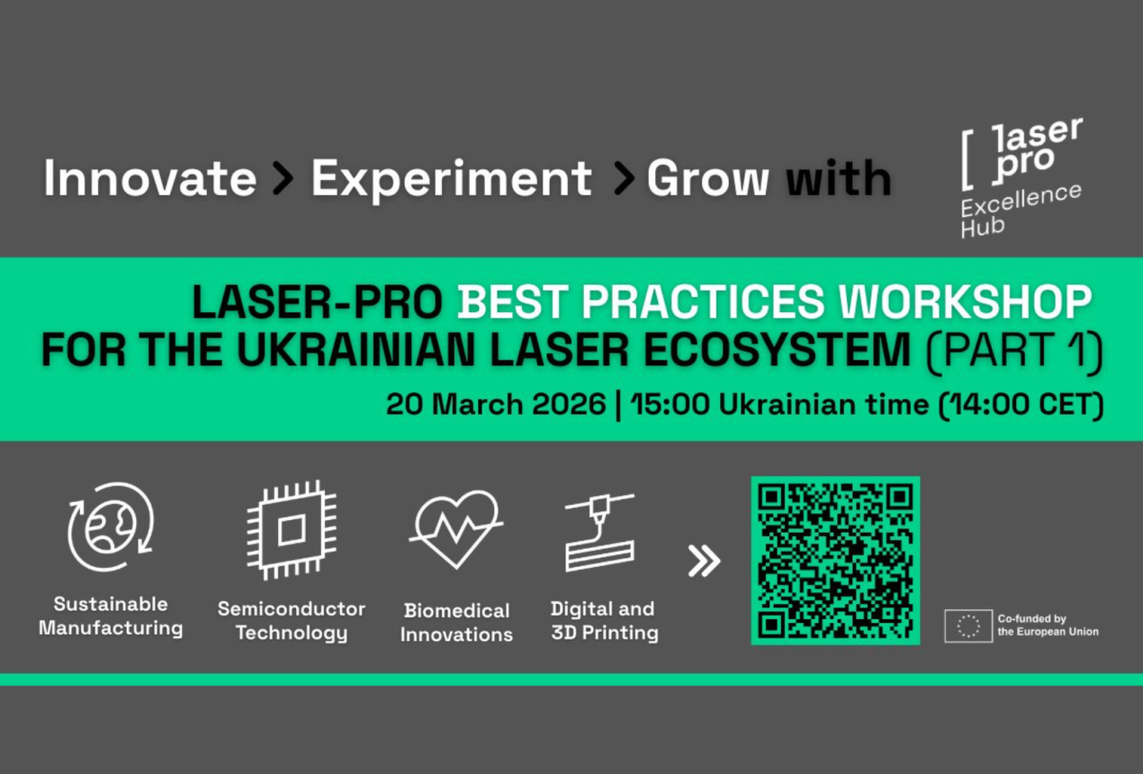 This webinar is an important part of the LASER-PRO project, aiming to enhance Ukraine’s innovation capacity in laser technologies and support its integration into the broader European research and innovation network.