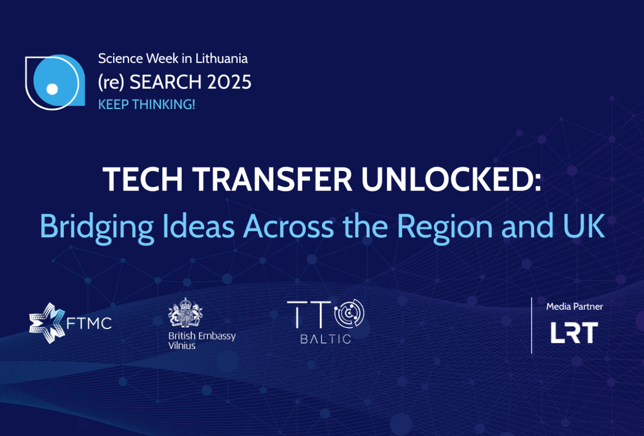 The event is part of Science Week in Lithuania 2025 (re) SEARCH, organised by the Research Council of Lithuania in cooperation with the Ministry of Education, Science and Sport, the Ministry of Foreign Affairs, FTMC, the British Embassy in Vilnius, and the Baltic States TTO Network.