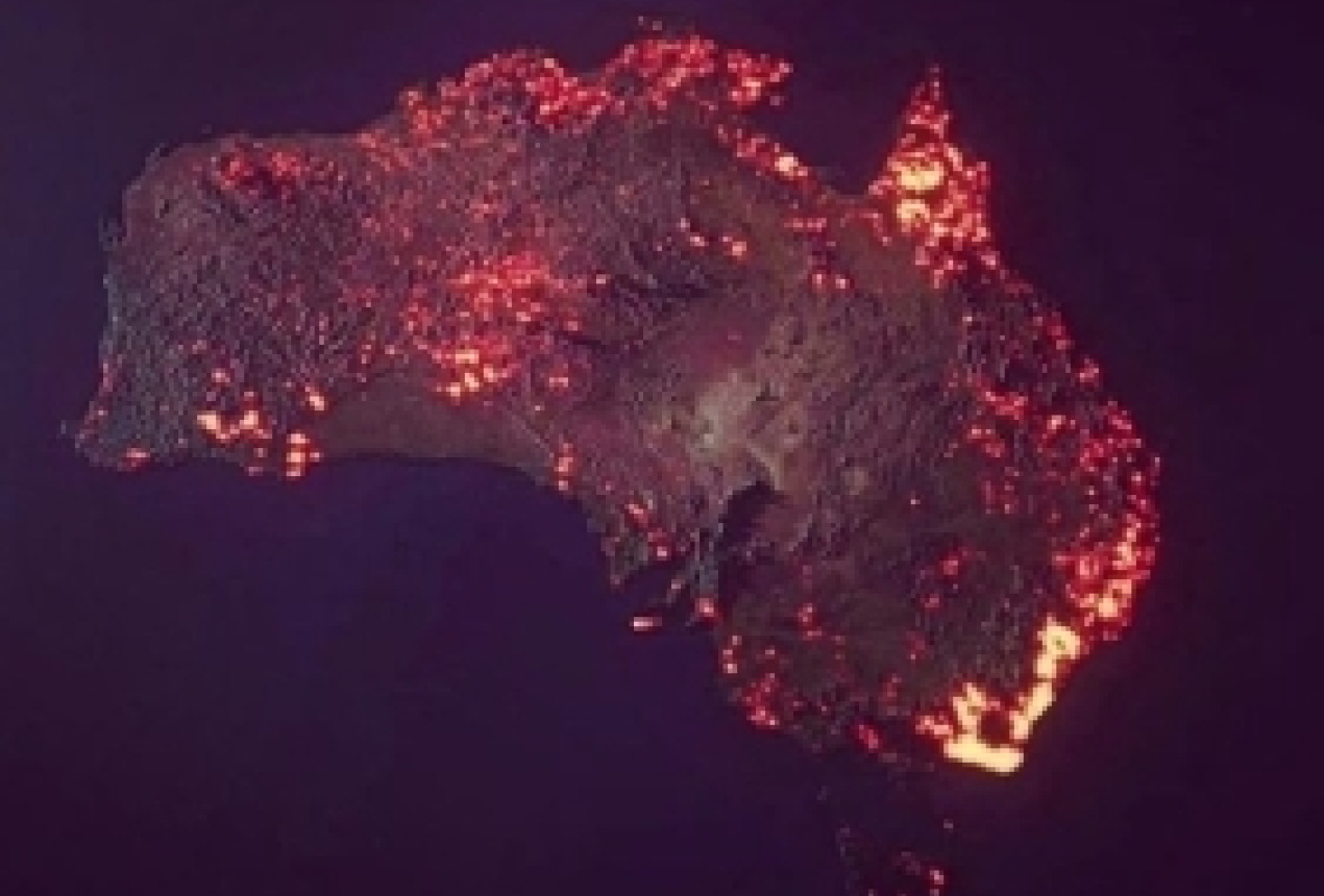 Pasaulio žiniasklaidoje ir socialiniuose tinkluose plintant katastrofos Australijoje vaizdams, ypatingo populiarumo sulaukė iliustracija, kurioje matomas liepsnų apimtas žemynas.