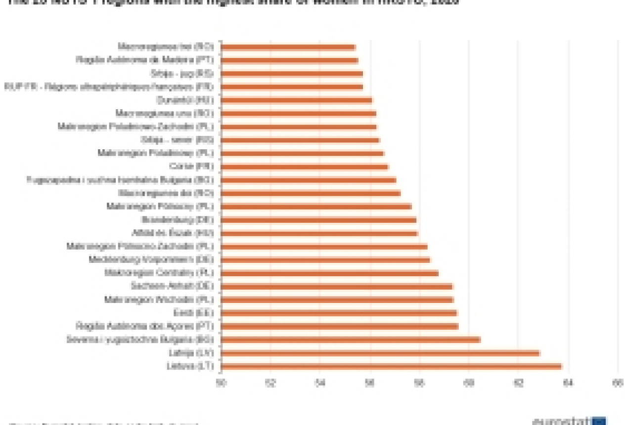 Vasario mėn. paskelbtais „Eurostat” (Europos statistikos agentūros) duomenimis, 2020 m. Europos sąjungoje (ES) dirbo beveik 6,6 mln. moterų mokslininkių ir inžinierių, tai - 254,5 tūkst. daugiau nei 2019 m. „Eurostat” pateikta naujausia statistika rodo, kad Lietuva ir toliau pirmauja ES valstybėse pagal moterų, dirbančių moksle bei technologijose, skaičių - 63,7 %. Antroje vietoje ES yra Latvija – 62,9 %, toliau rikiuojasi Šiaurės rytų Bulgarija – 60,4 %, Azorų salų autonominis regionas – 59,6 % ir Estija – 59,5 %.