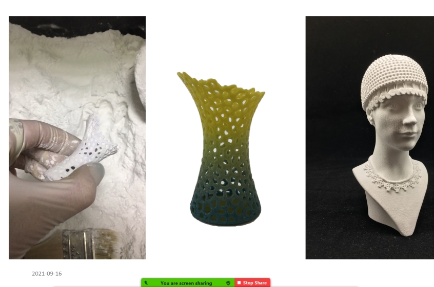 3D technologijų ir robotikos laboratorijos jaunesnioji mokslo darbuotoja Ada Steponavičiūtė nuotolinės ekskursijos - paskaitos dalyvius supažindino su skirtingomis 3D spausdinimo technologijomis, jų veikimo principais, naudojamomis medžiagomis, pridėtinės gamybos privalumais, lyginant su įprastomis gamybos technologijomis. Taip pat jaunoji mokslininkė papasakojo apie FTMC LTS 3D technologijų ir robotikos laboratorijoje turimą 3D spausdinimo įrangą, pademonstravo spausdinimo proceso vaizdo įrašus bei iš metalo ir keramikos atspausdintų objektų vaizdus.