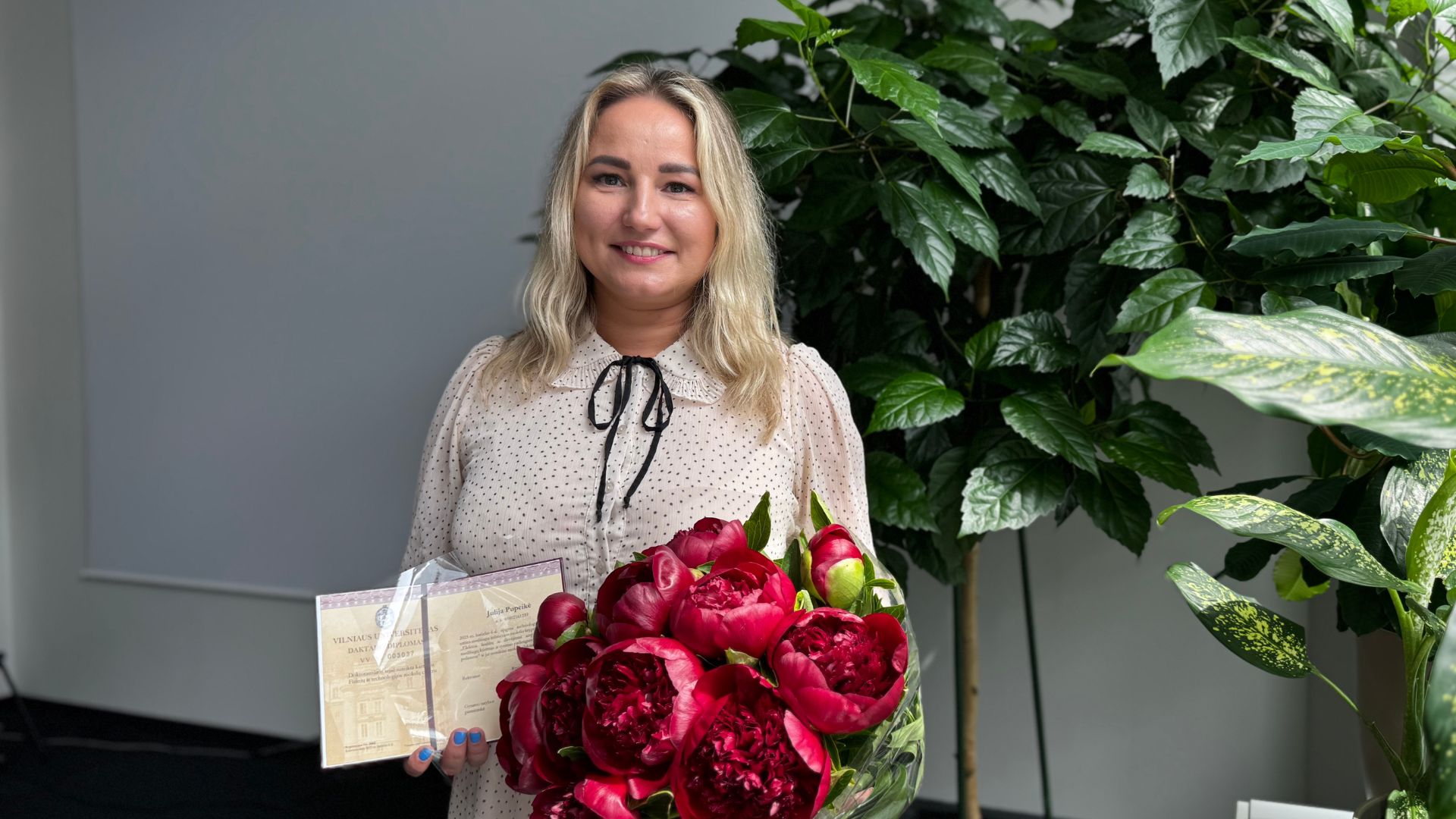 Mūsų Centras turi naują technologijos mokslų daktarę! Ja tapo FTMC Tekstilės technologijų skyriaus jaunesnioji mokslo darbuotoja Julija Pupeikė, kuri birželio 6 d. sėkmingai apgynė disertaciją „Elektrai laidžių ir dėvėjimui atsparių tekstilės medžiagų kūrimas ir tyrimas padengiant PEDOT:PSS polimeru“ (mokslinė vadovė: dr. Audronė Sankauskaitė).