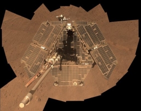 Opportunity 2014 sausį (kairėje) ir kovą (dešinėje). Tarp nuotraukų praūžusi audra nuvalė marsaeigio saulės baterijas. Šaltinis: NASA/JPL-CaltechPraeitą savaitę NASA paskelbė, kad oficialiai užbaigė Opportunity marsaeigio misiją. Marsaeigis į Raudonąją planetą nusileido 2004 metų sausį ir daugiau nei keturiolika metų ten dirbo, nors planuota misijos trukmė buvo vos 90 parų. Per tą laiką jis aptiko įrodymų, kad Marse kadaise buvo skysto vandens ir padarė daugybę kitų atradimų, kurie radikaliai pakeitė mūsų supratimą apie šią planetą. Tiek ilgai marsaeigis išgyveno dėl labai geros inžinerijos, taip pat dėl Marso audrų, kurios kartais nuvalydavo jo Saulės baterijas (tą matome ir nuotraukoje). Deja, paskutinė audra pernai birželį buvo per ilga ir per stipri, ir marsaeigis po jos nebeatsigavo. Dabar telieka pasidžiaugti puikiais Opportunity rezultatais ir laukti kitų misijų ir kitų atradimų.