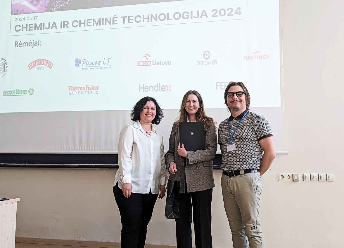 Konferencijoje dalyvavusi FTMC Aplinkotyros skyriaus doktorantė Sonata Pleskytė laimėjo pirmąją vietą už geriausią žodinį pranešimą analizinės, fizikinės ir aplinkos chemijos sekcijoje.