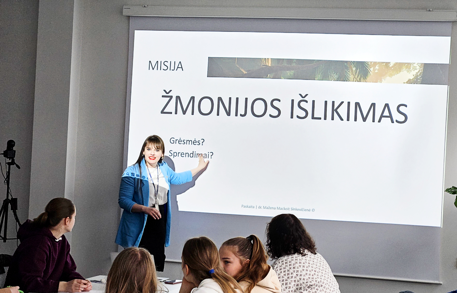„Tai štai, galėjote šiek tiek patirti darbo grupėje. Gyvenime ir darbe turime skirtingas roles, tad svarbu suprasti, ką mėgsti daryti – ir imti tą daryti“, – patarė Vytautas, trumpai ir su šypsena pristatęs, kodėl tapo mokslininku: „Mano abu tėvai yra mokytojai, o močiutė rašo vadovėlius...“