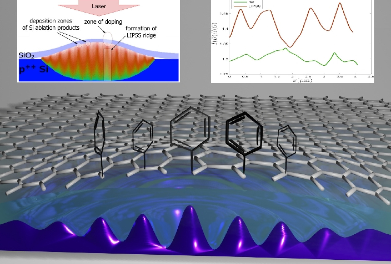 Pasak tyrimą atlikusių FTMC mokslininkų, funkcinių grupių erdvinio pasiskirstymo kontrolė dviejų dimensijų (2D) medžiagose mikro/nano matmenų skalėje - tai žavi galimybė pasiekti šių medžiagų anizotropines optoelektronines savybes. Periodinis kovalentinio funkcionalumo pasiskirstymas paviršiuje gali sukelti periodinį monosluoksnio potencialą, tačiau sukurti tokius nano-darinius yra labai sudėtinga. Žurnale „Nano Research“ publikuotame darbe aprašomas tarptautinės mokslininkų grupės sukurtas naujas, originalus būdas sukurti periodišką grafeno funkcionalizavimą, sukeltą periodiškai modifikuojant padėklą, panaudojus ultratrumpų impulsų lazerį.