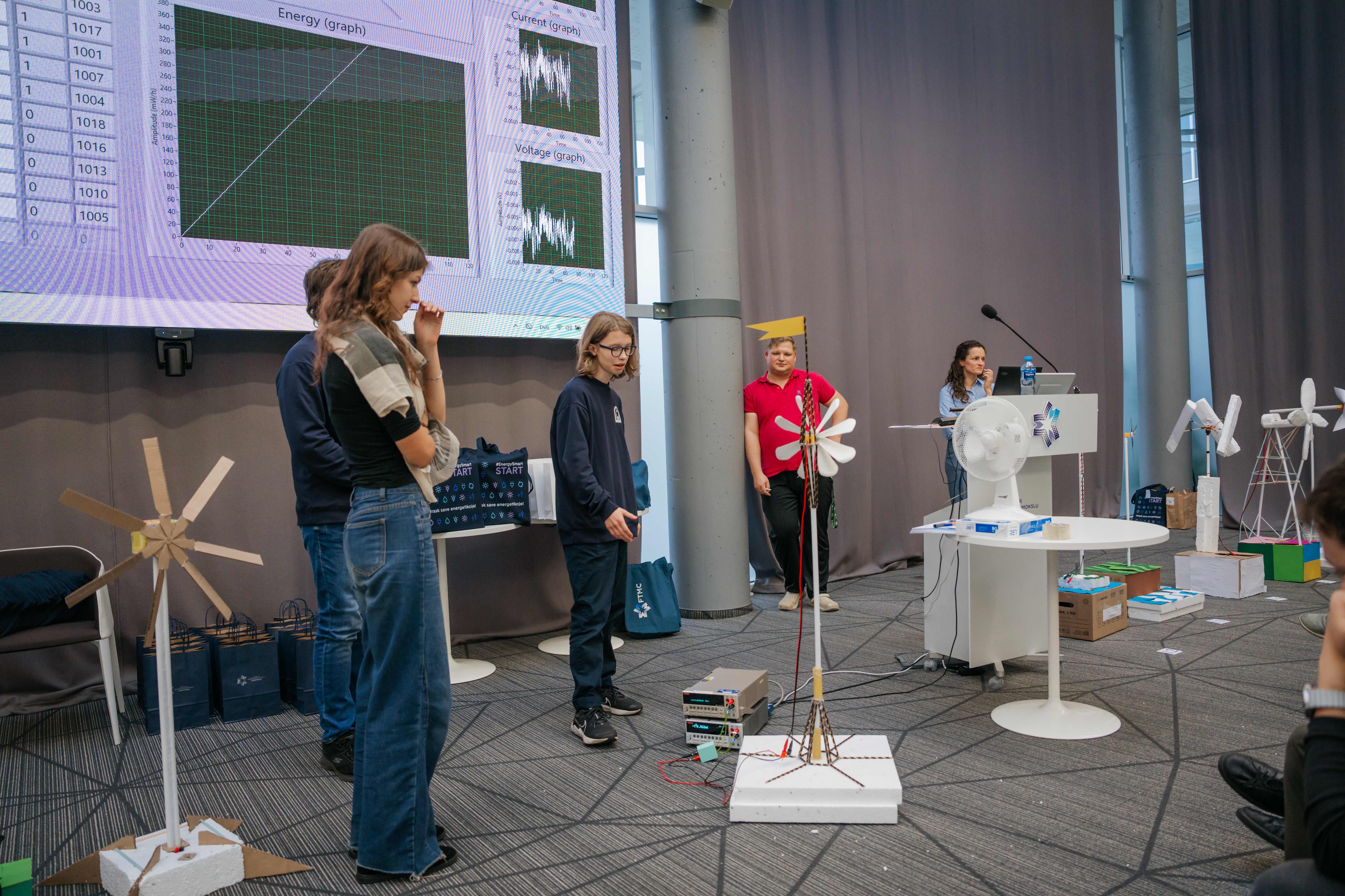 Dalyviai turėjo realiu laiku sukurti veikiantį vėjo jėgainės modelį iš pateiktų (ir vienos atsivežtos) medžiagų – ir padaryti taip, kad šios jėgainės energijos pakaktų lemputei įžiebti. Pagamintus modelius įvertino komisija, sudaryta iš VU Chemijos ir geomokslų fakulteto, FTMC ir AB „Ignitis grupės“ atstovų.