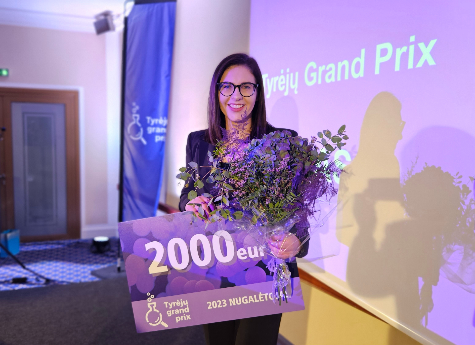 One such chemist is Raimonda Bogužaitė, a PhD student of the Department of Nanotechnologies. On 18 October, she won Tyrėjų Grand Prix 2023, a unique competition for young scientists in Lithuania. Her presentation on molecular imprinting in sensors was gripping from the very first seconds.
