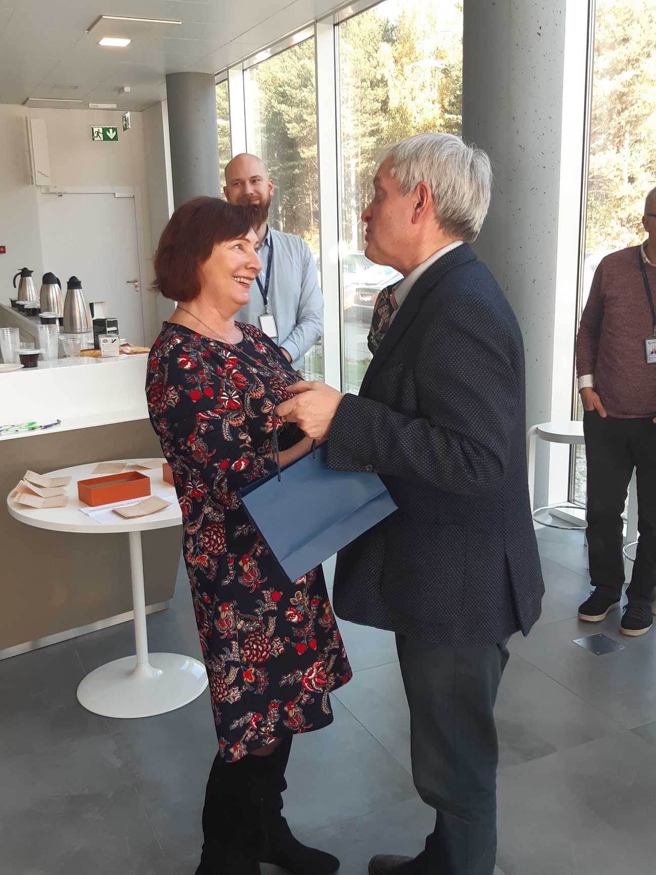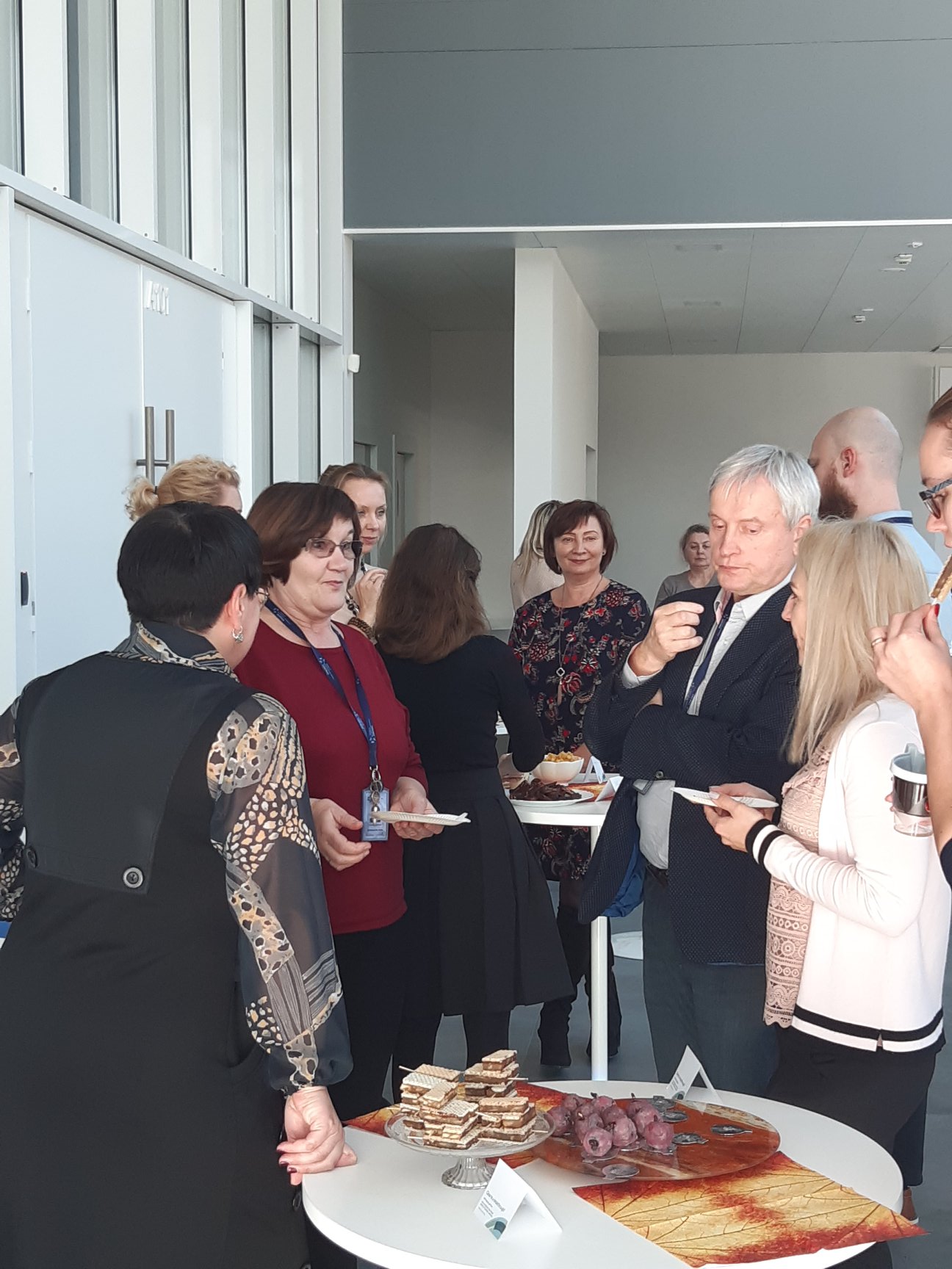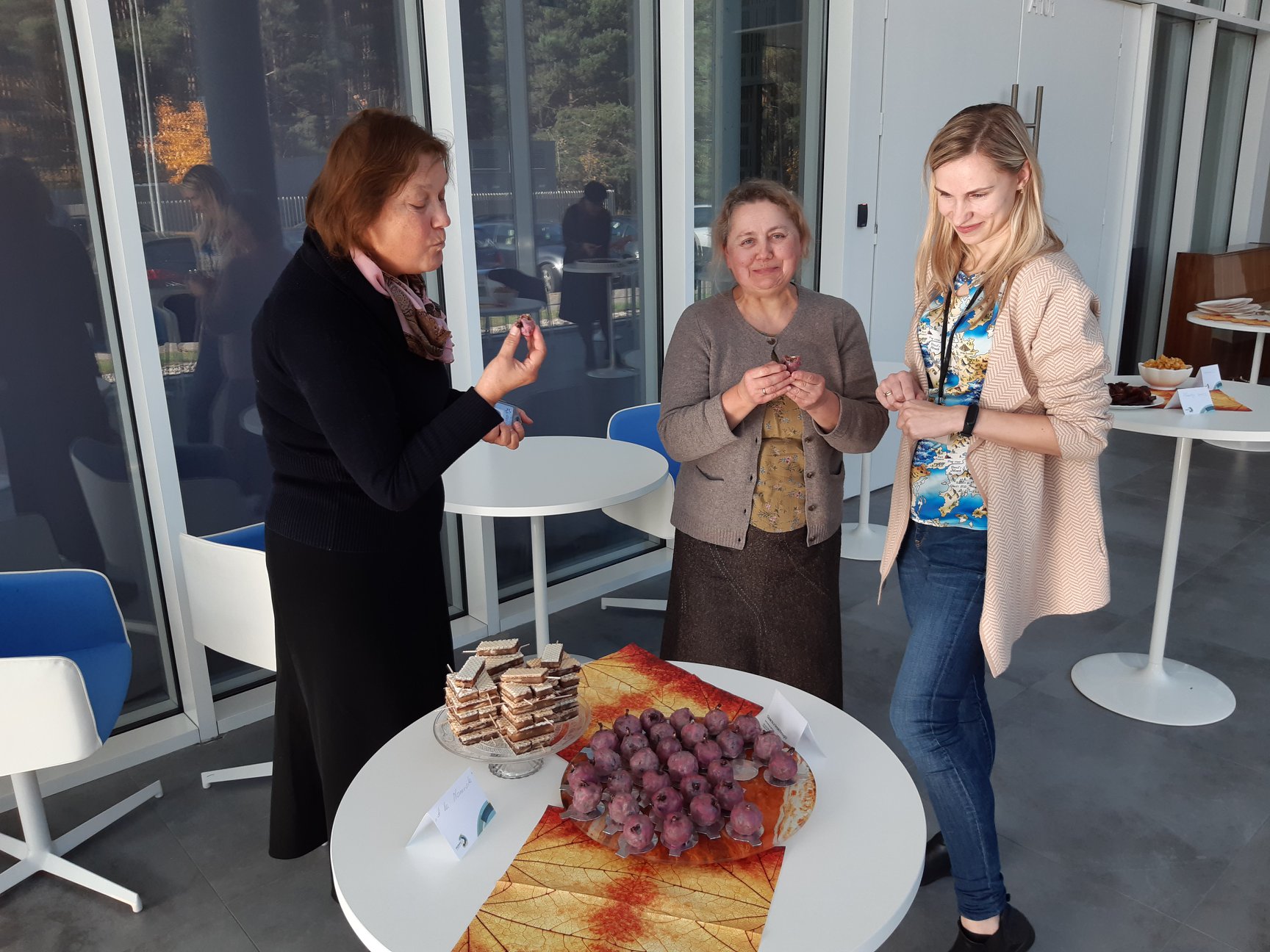 Parodoje – degustacijoje prie kartu su kolegomis suruošto bendro stalo vaišinomės kvapniais, gardžiais obuolių pyragais, aromatingais obuolių sūriais. Stiprinome imunitetą vitamino C „užtaisu“ - svarainiais, spalvingomis salotomis, obuolių sultimis „Obuolėlių ašaros iš Marijampolės“.