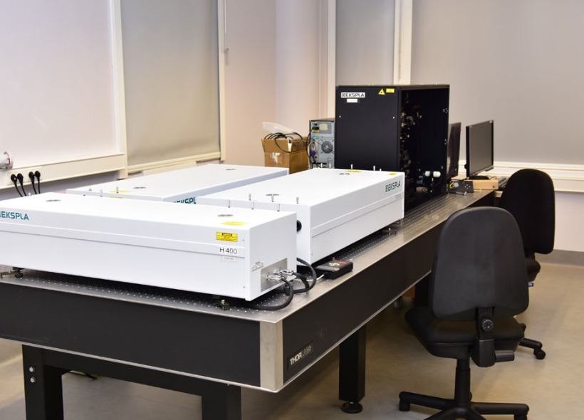Molekulinių darinių fizikos skyriuje sukurtas elektroninės spektroskopijos kompleksas sudarytas iš eilės stacionariosios ir kinetinės ultrasparčiosios spektroskopijos prietaisų suteikiantis galimybę detaliai charakterizuoti molekulinių darinių elektronines savybes ir šviesa indukuotus vyksmus plačioje trukmių skalėje nuo femtosekundžių iki minučių ir valandų. Taip pat skyriuje išvystyti įvairūs optinės mikroskopijos metodai įskaitant netiesinę koherentinės antistoksinės Ramano sklaidos bei antrosios optinės harmonikos mikroskopiją. Tiriant vyksmus optoelektriniuos eprietaisuose spektroskopiniai tyrimai derinami su elektriniais. Siekiant detaliau išsiaiškinti vyksmų mechanizmus, tyrimai dažnai atliekami įvairiose temperatūrose; yra galimybė bandinius atšaldyti iki 10 K. Šalia eksperimentinių tyrimų atliekami ir teoriniai vyksmų ir molekulinių kompleksų savybių tyrimai.