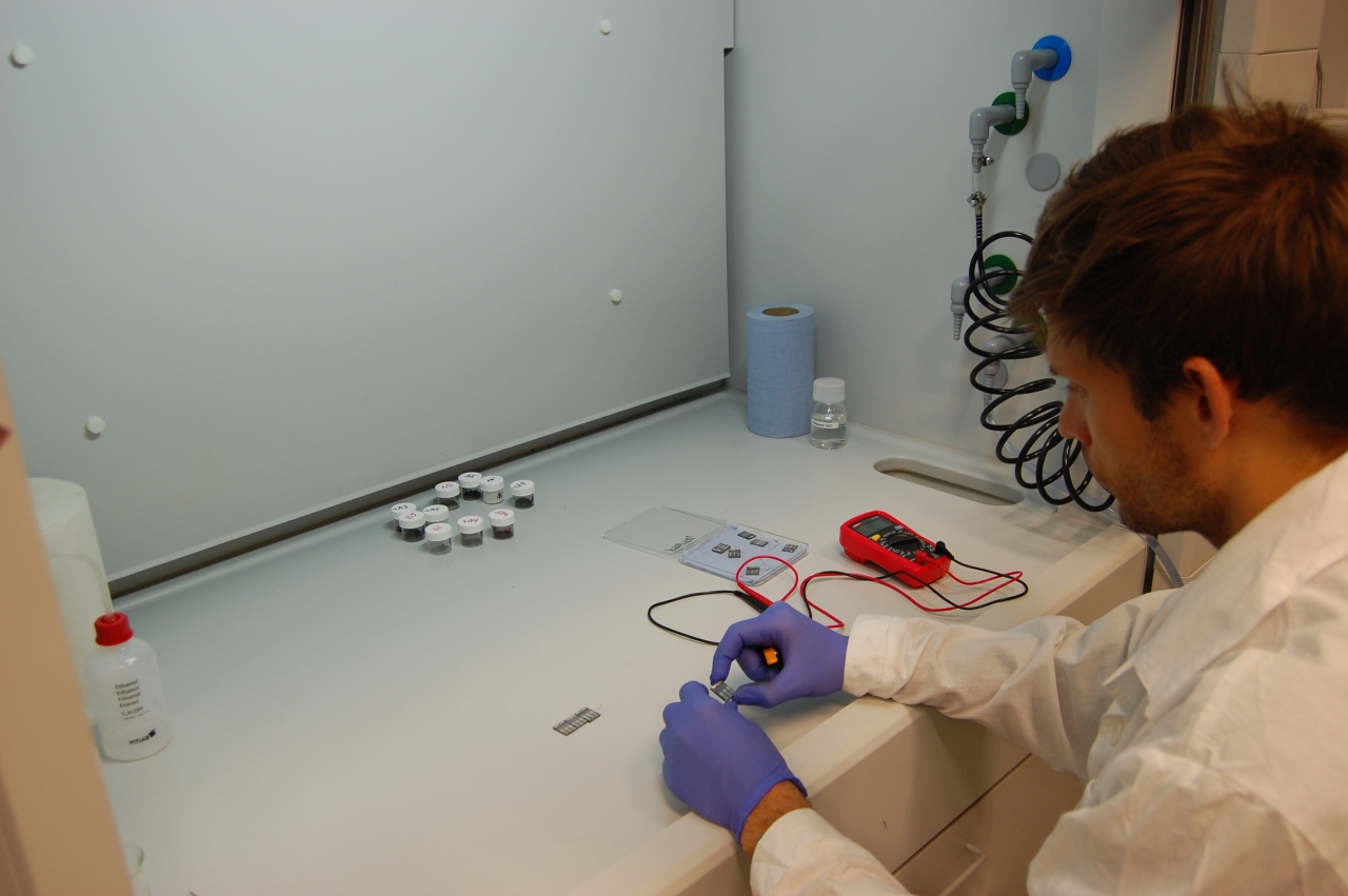 Pagamintų saulės elementų testavimas (asmeninio archyvo nuotrauka)