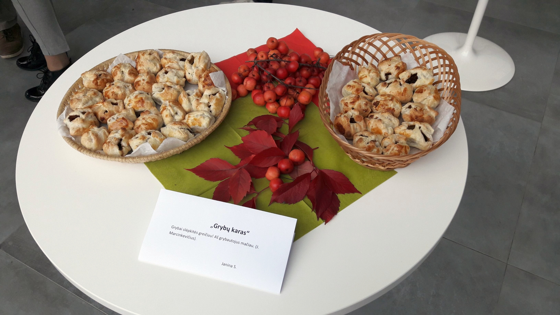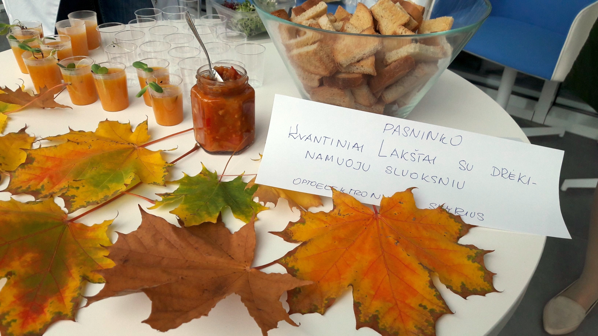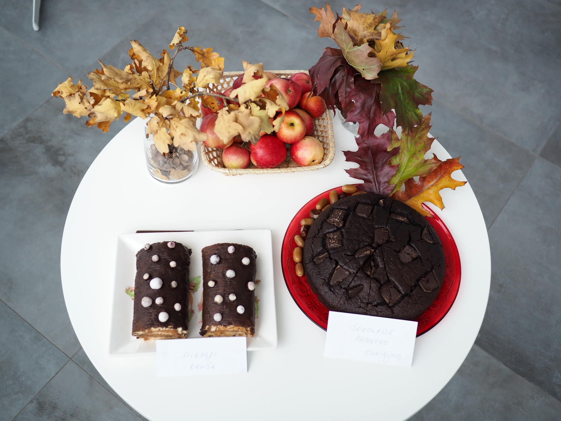 2018 m. spalio 19 d. „Laisvalaikio laboratorija“ pakvietė visus atsipūsti nuo darbų, susitikti prie bendro stalo, pasidalinti naujais patiekalų receptais ir pasivaišinti spalvingu maistu. Parodoje–degustacijoje „Rudens skanėstai“ galėjome paskanauti dviejų rūšių karštos moliūgų sriubos, įdarytų slyvų, gardžių salotų, pyragėlių su grybais. Tarp saldžių patiekalų karaliavo įspūdingi pyragai.