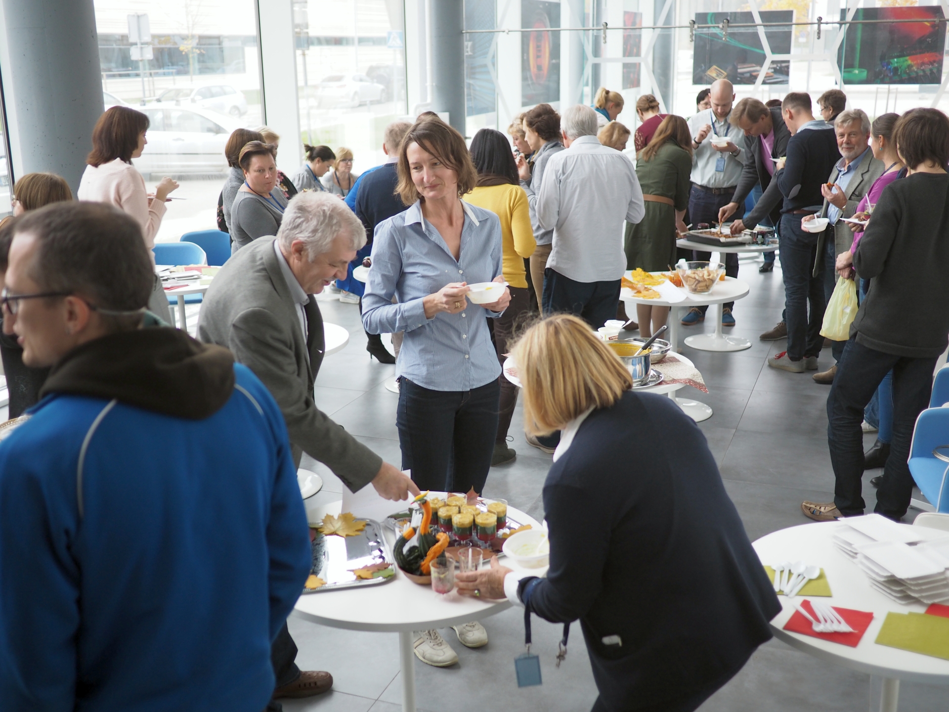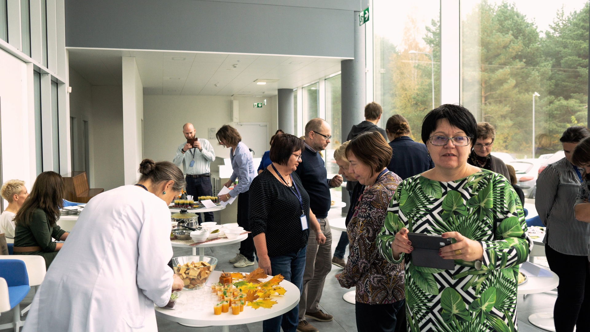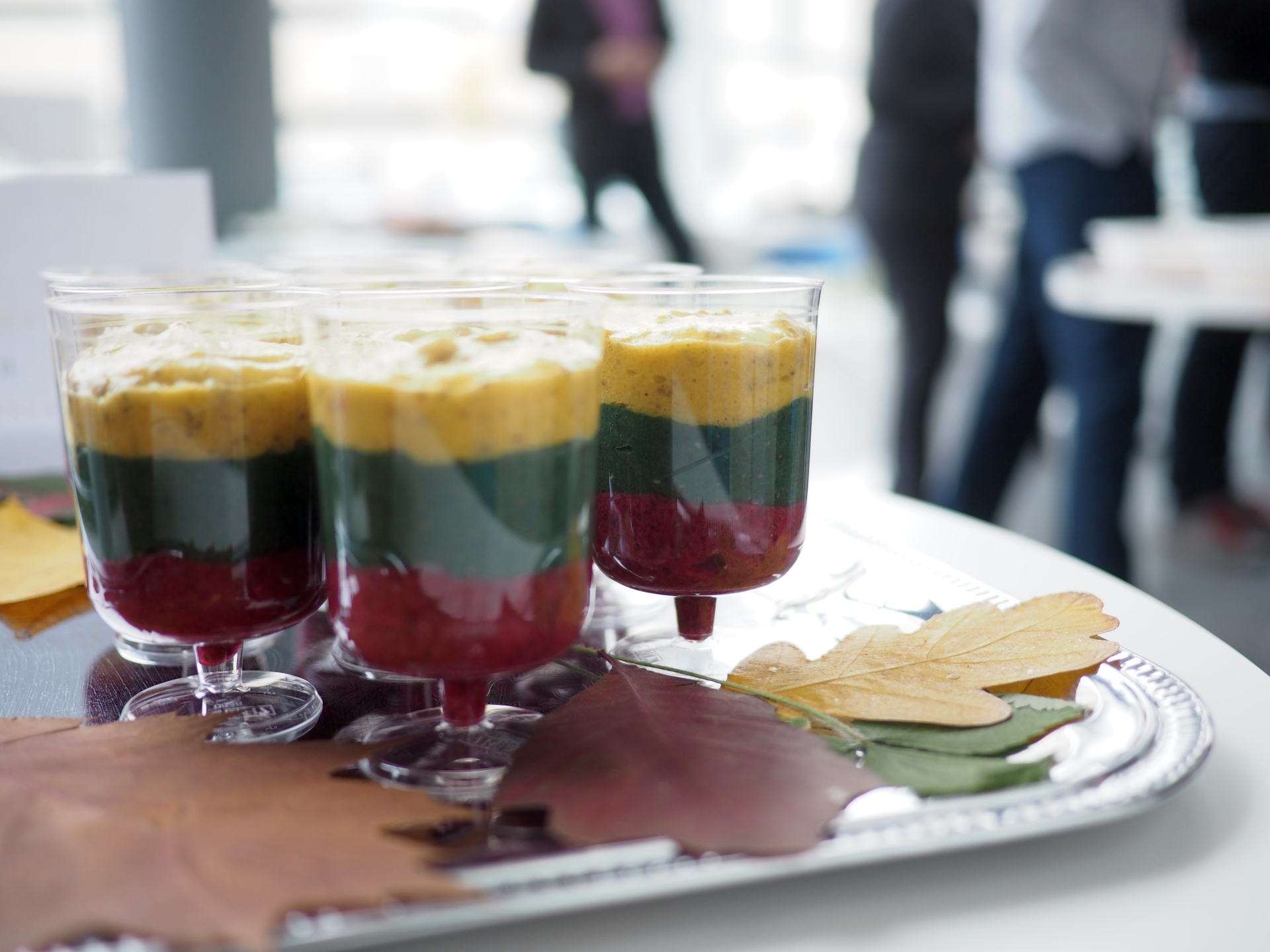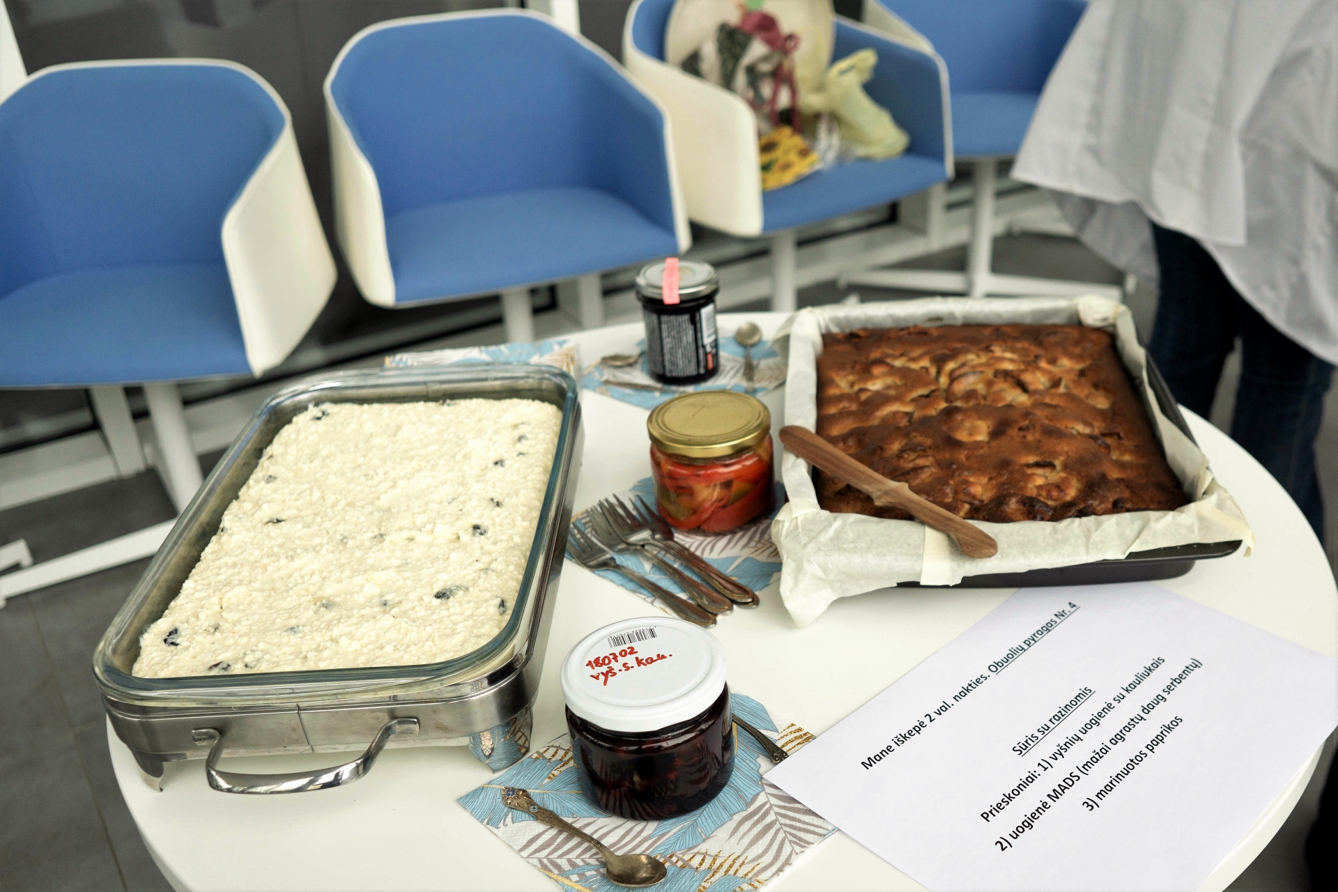 2018 m. spalio 19 d. „Laisvalaikio laboratorija“ pakvietė visus atsipūsti nuo darbų, susitikti prie bendro stalo, pasidalinti naujais patiekalų receptais ir pasivaišinti spalvingu maistu. Parodoje–degustacijoje „Rudens skanėstai“ galėjome paskanauti dviejų rūšių karštos moliūgų sriubos, įdarytų slyvų, gardžių salotų, pyragėlių su grybais. Tarp saldžių patiekalų karaliavo įspūdingi pyragai.
