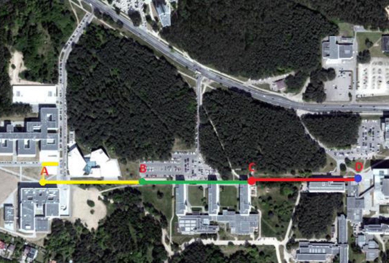 Kur? Saulėtekio alėja nuo NFTMC ir VU GMC pastatų iki VGTU pastatų.